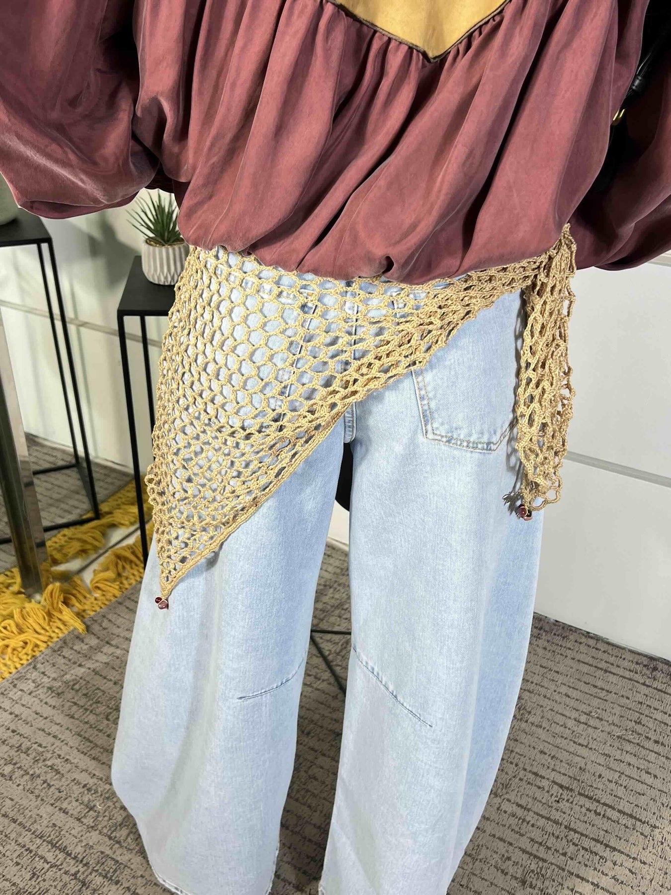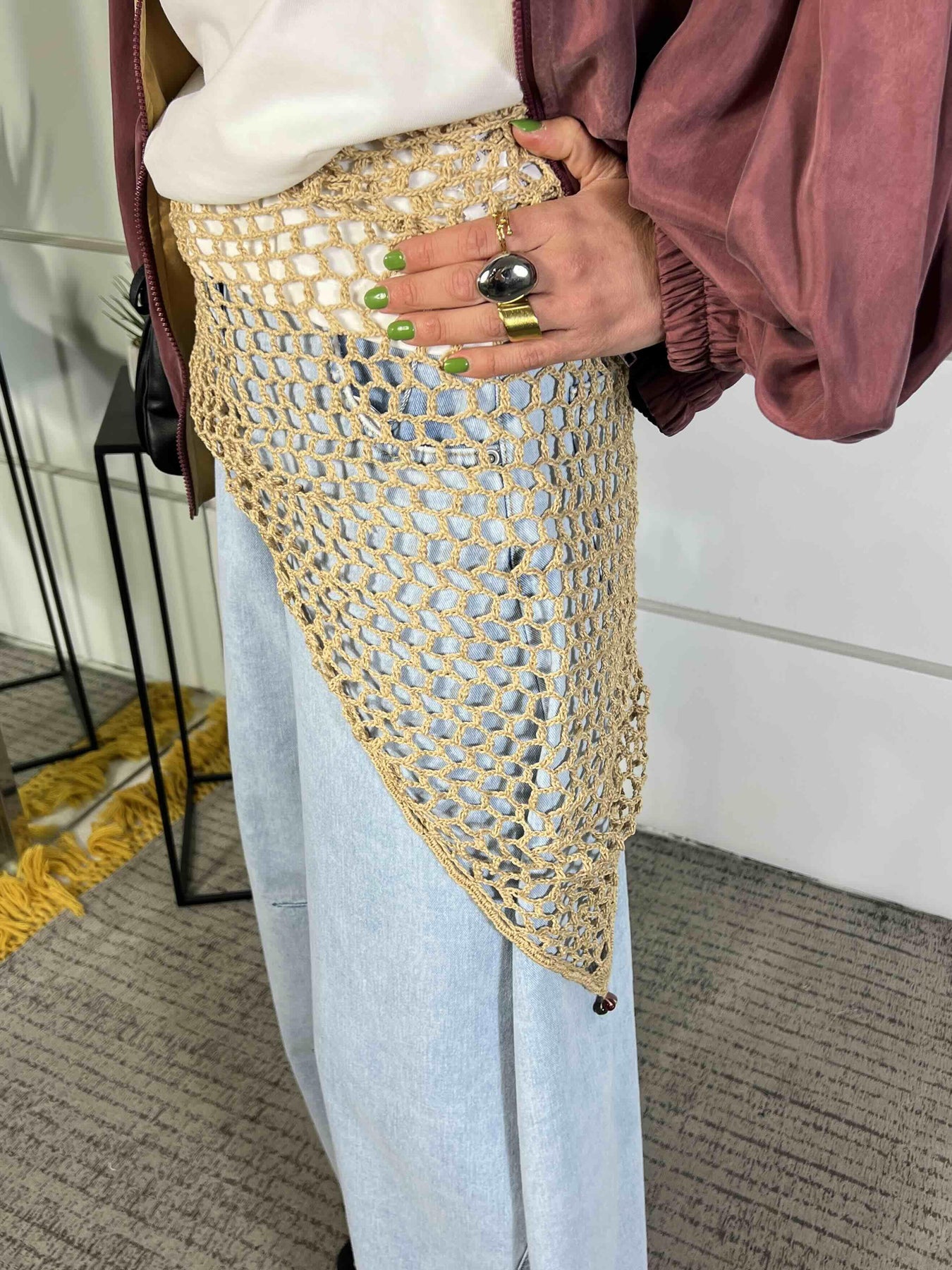 Pareo Patrizia Pepe sand, in cootne, conperline, la modella è alta 172cm ed è una 40, composizione 100%co