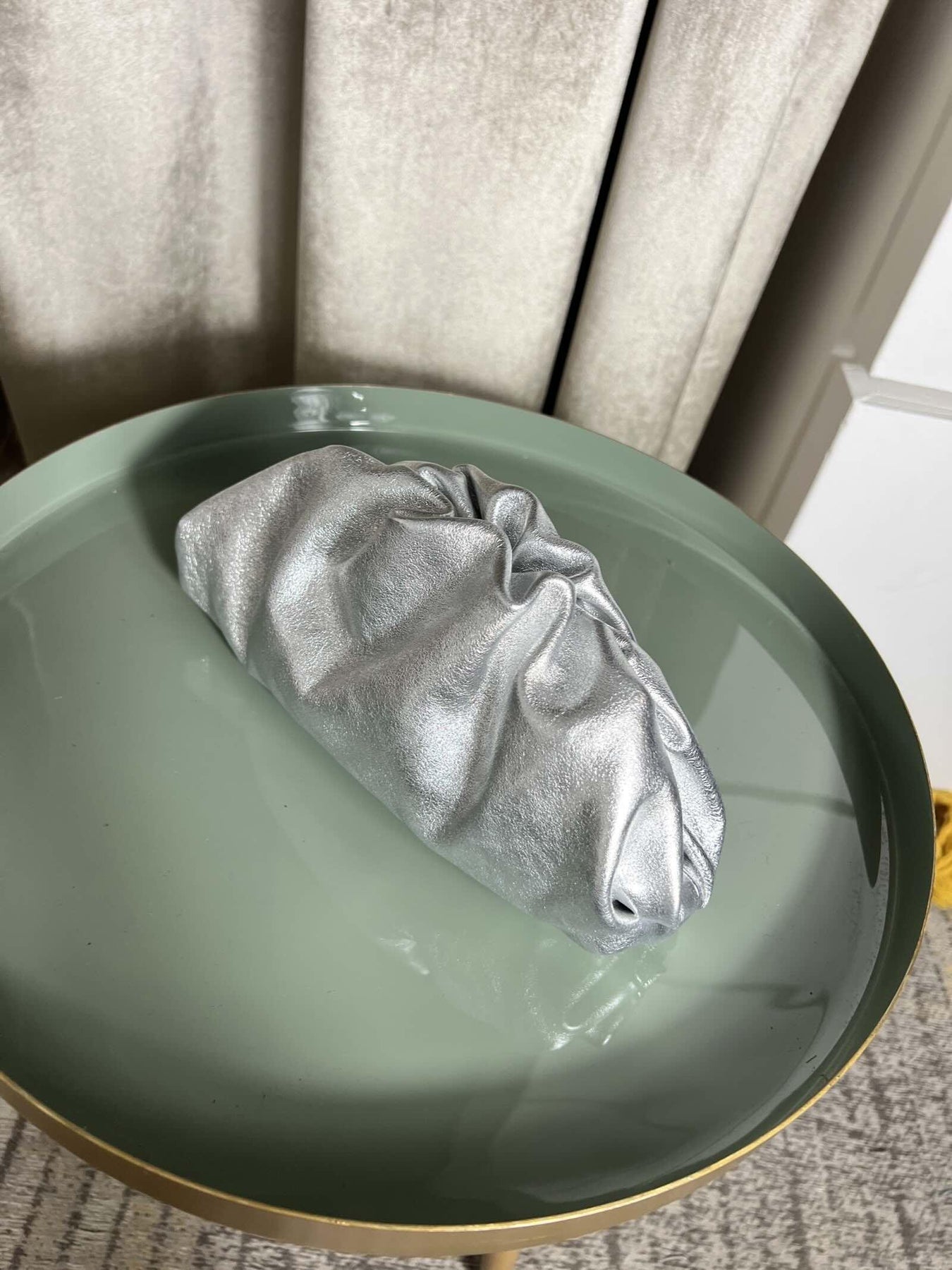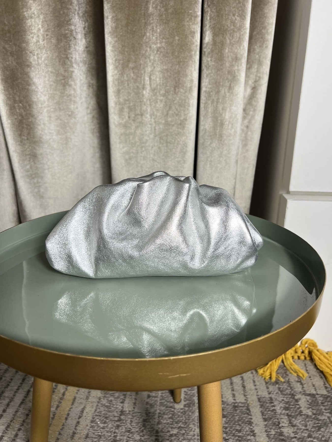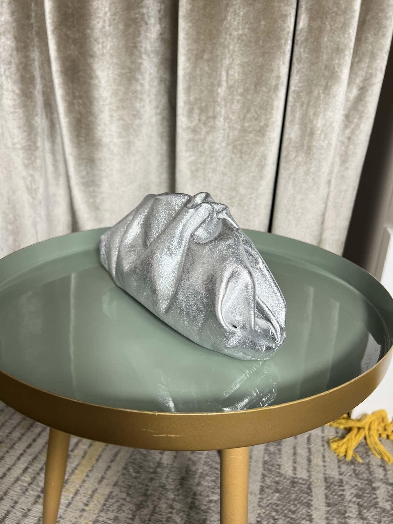 Borsa clutch Femme Cafe Selection metallizzata con tracolla a catena , in vera pelle argento. 100%pelle