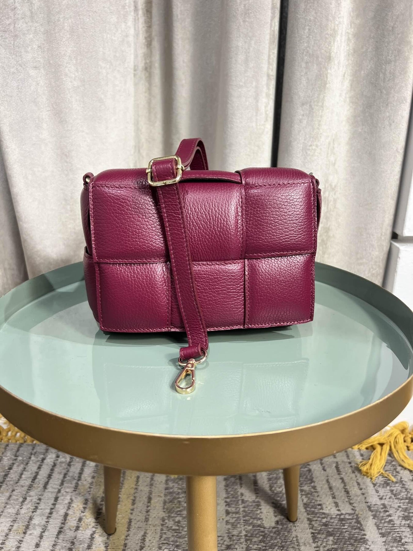Borsa Femme cafe Selection vino media a intreccio con tracolla regolabile e staccabile in vera pelle.