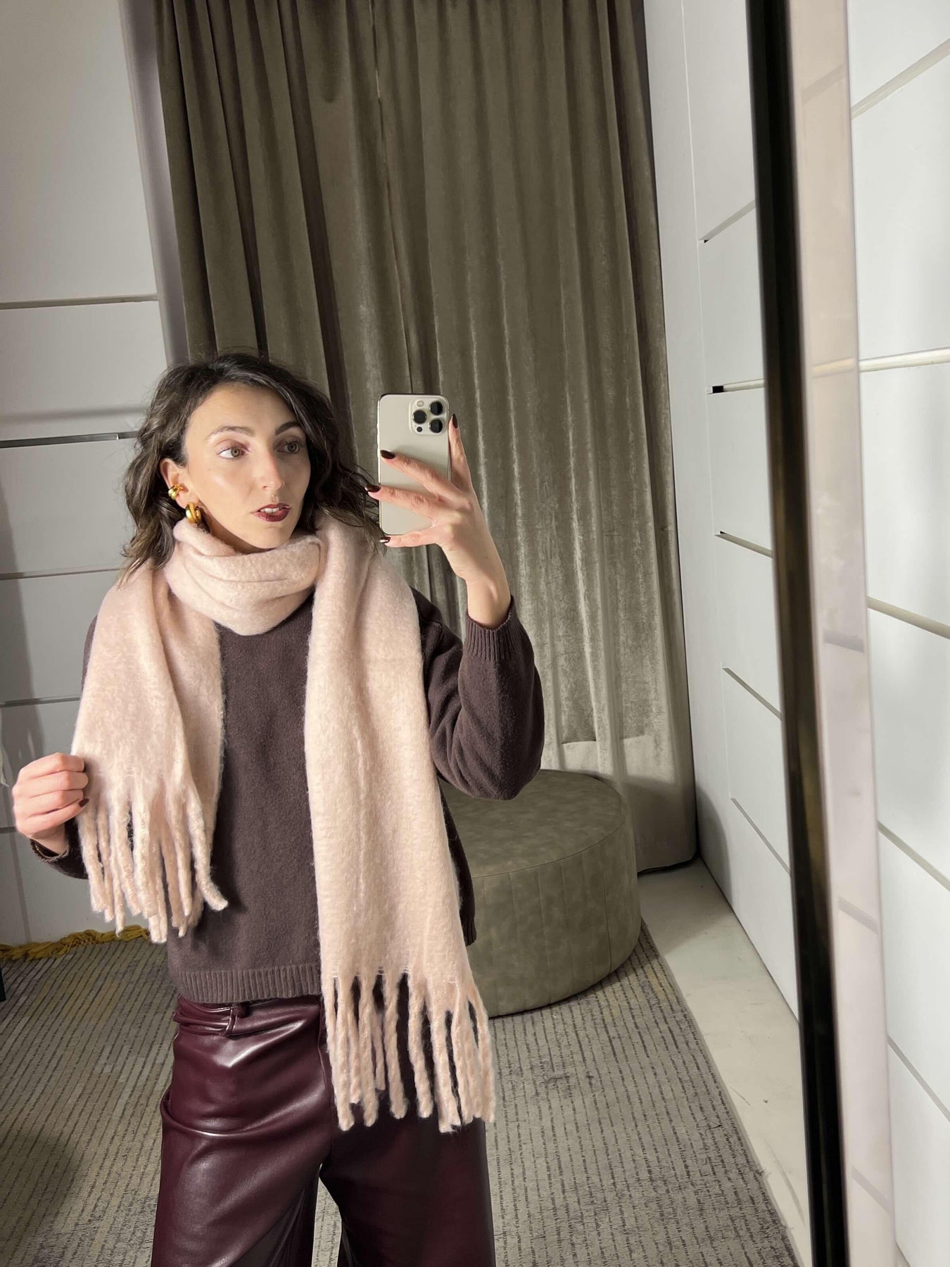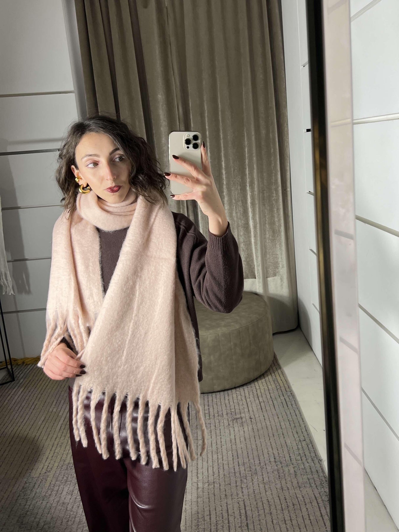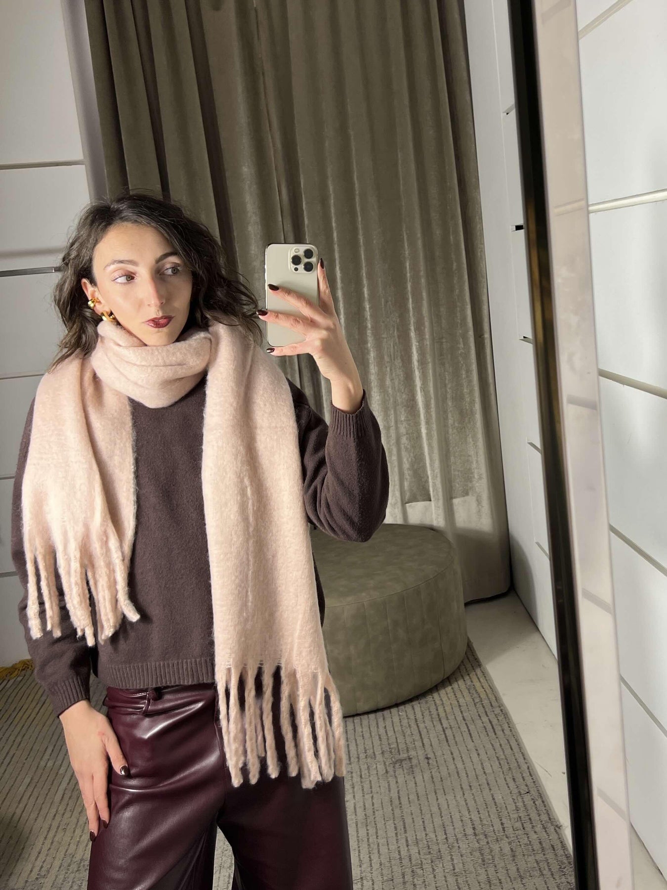 sciarpa con frange in misto lana rosa Composizione 90% acrilico 10% wool