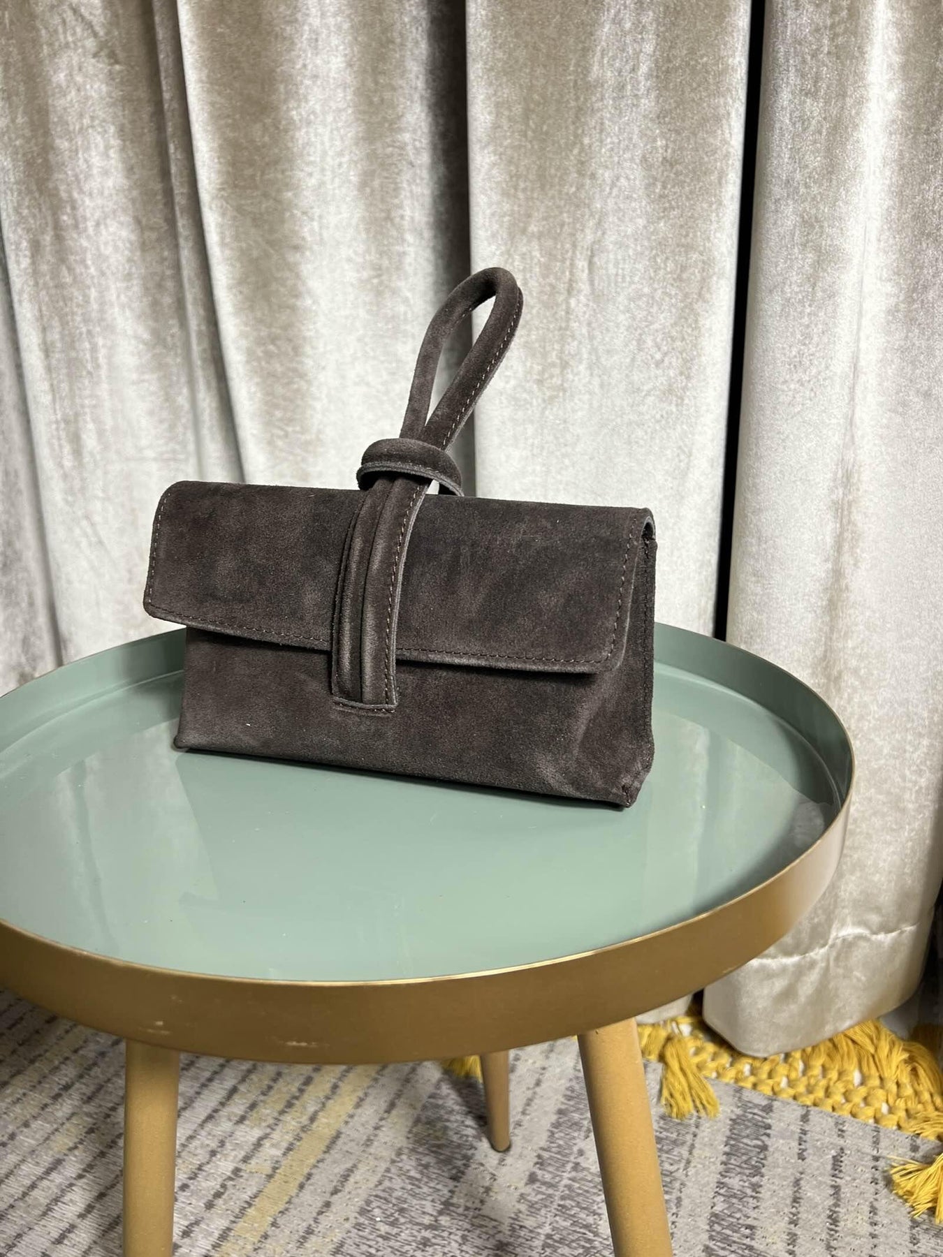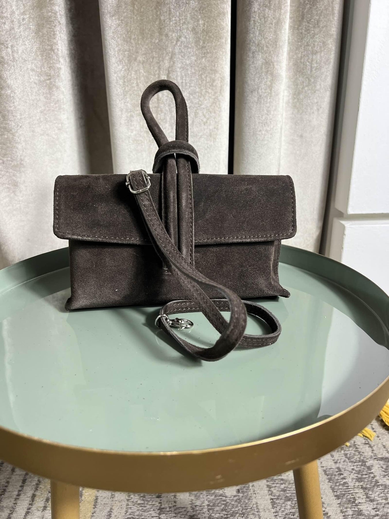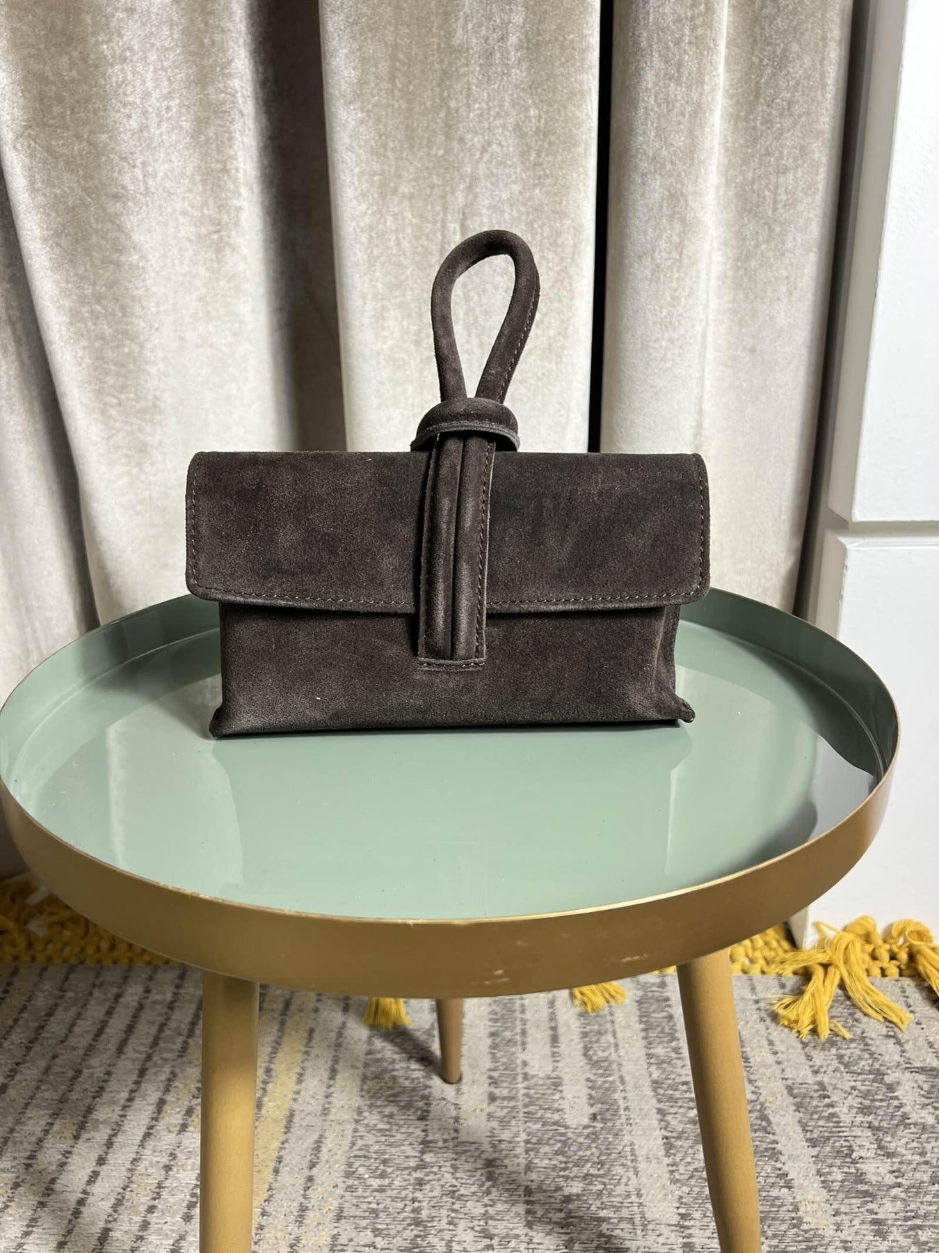 Borsa Femme Cafe selection moro in camoscio, modello a nodo, tracolla regolabile in camoscio.