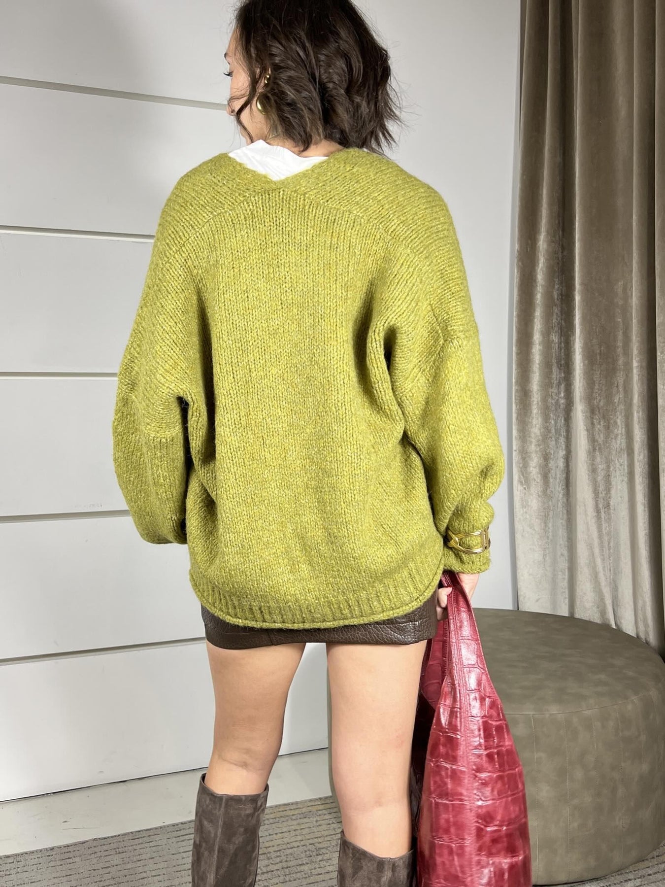 Cardigan HaveOne olio over 3 bottoni, misto lana. La modella è una 40 ed è alta 172cm, veste da una 38 a una 46. Composizione 62%pc 18%pl 8%wo 8%vi 4%wp