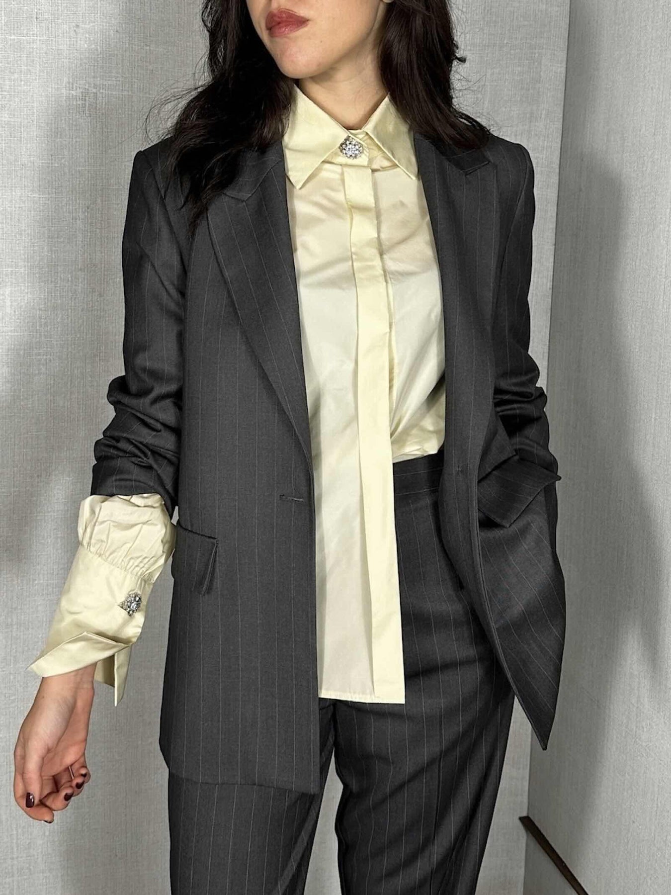 giacca monopetto gessata grigia ICIF4221 CARLA G