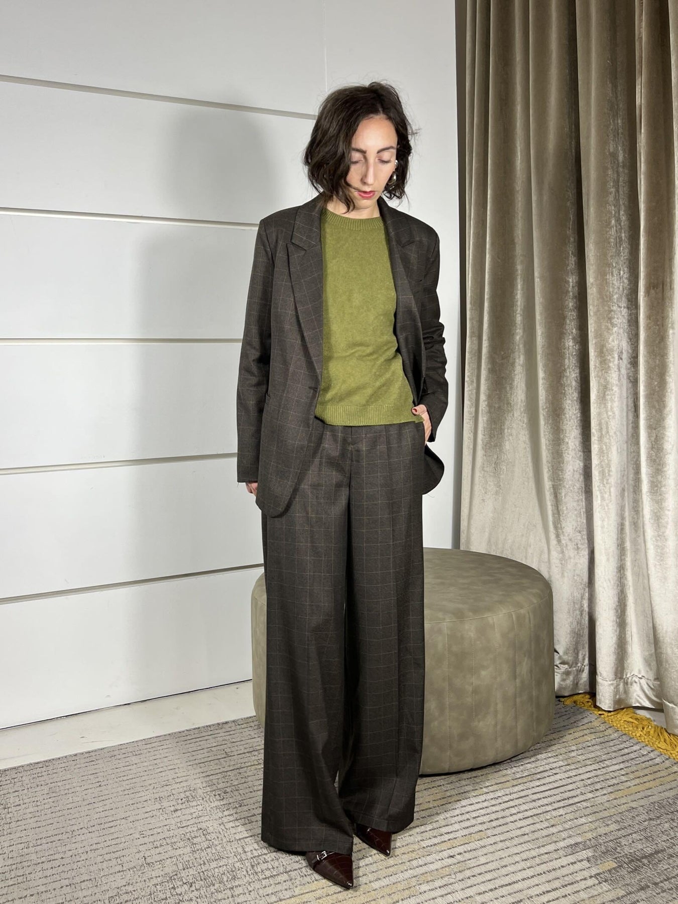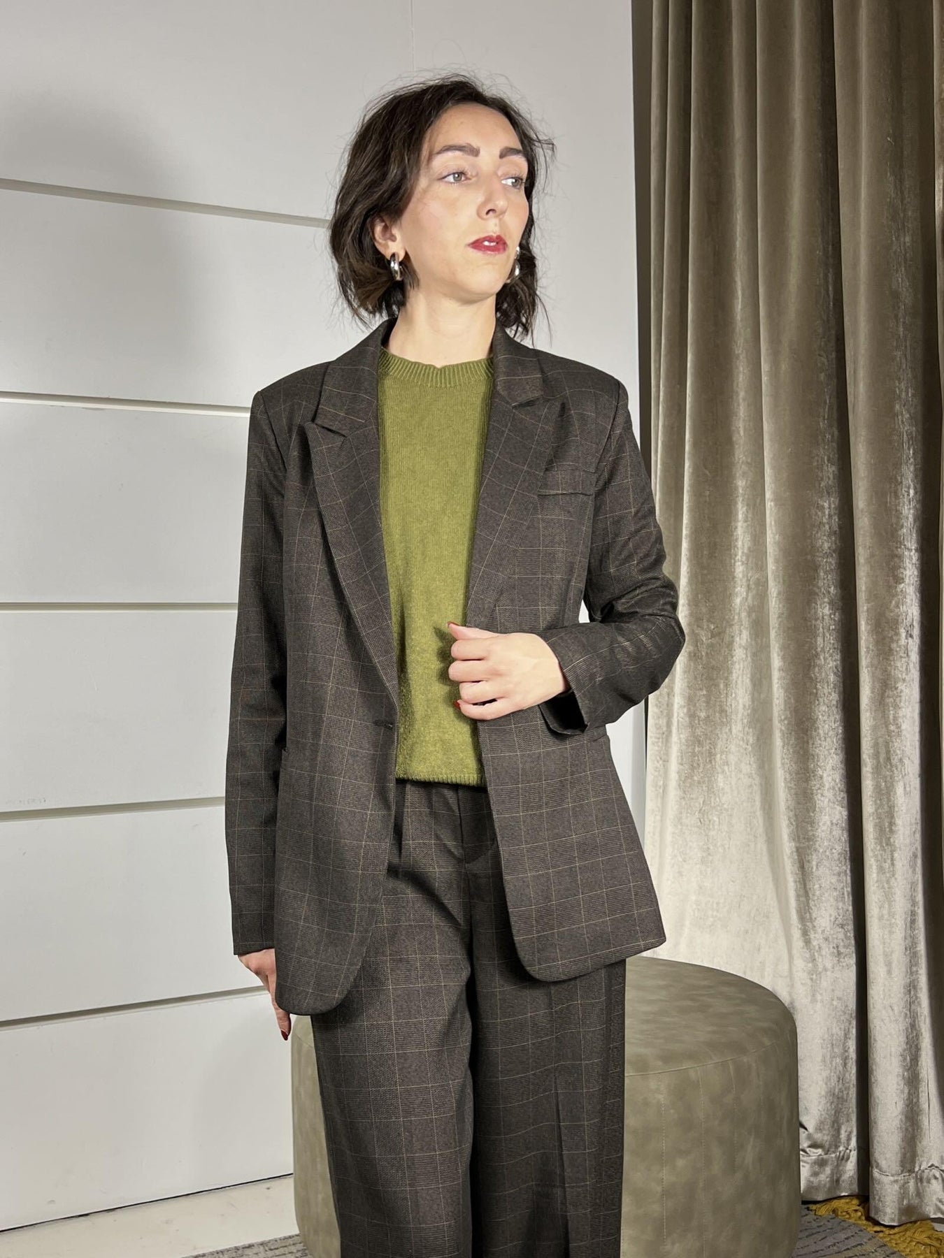 giacca HaveOne principe di Galles, moro, un bottone, la modella indossa la s ed è alta 172cm. Composizione 79%pl19%ra2%ea-95%pl5%ea