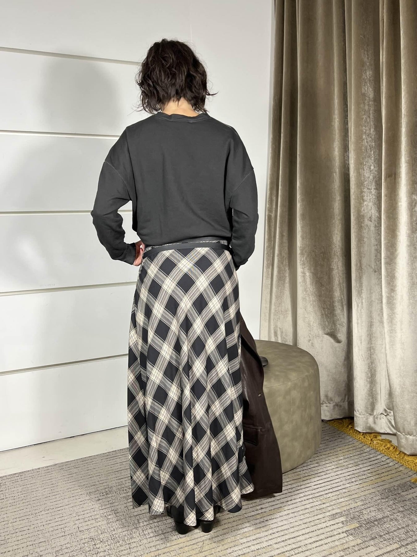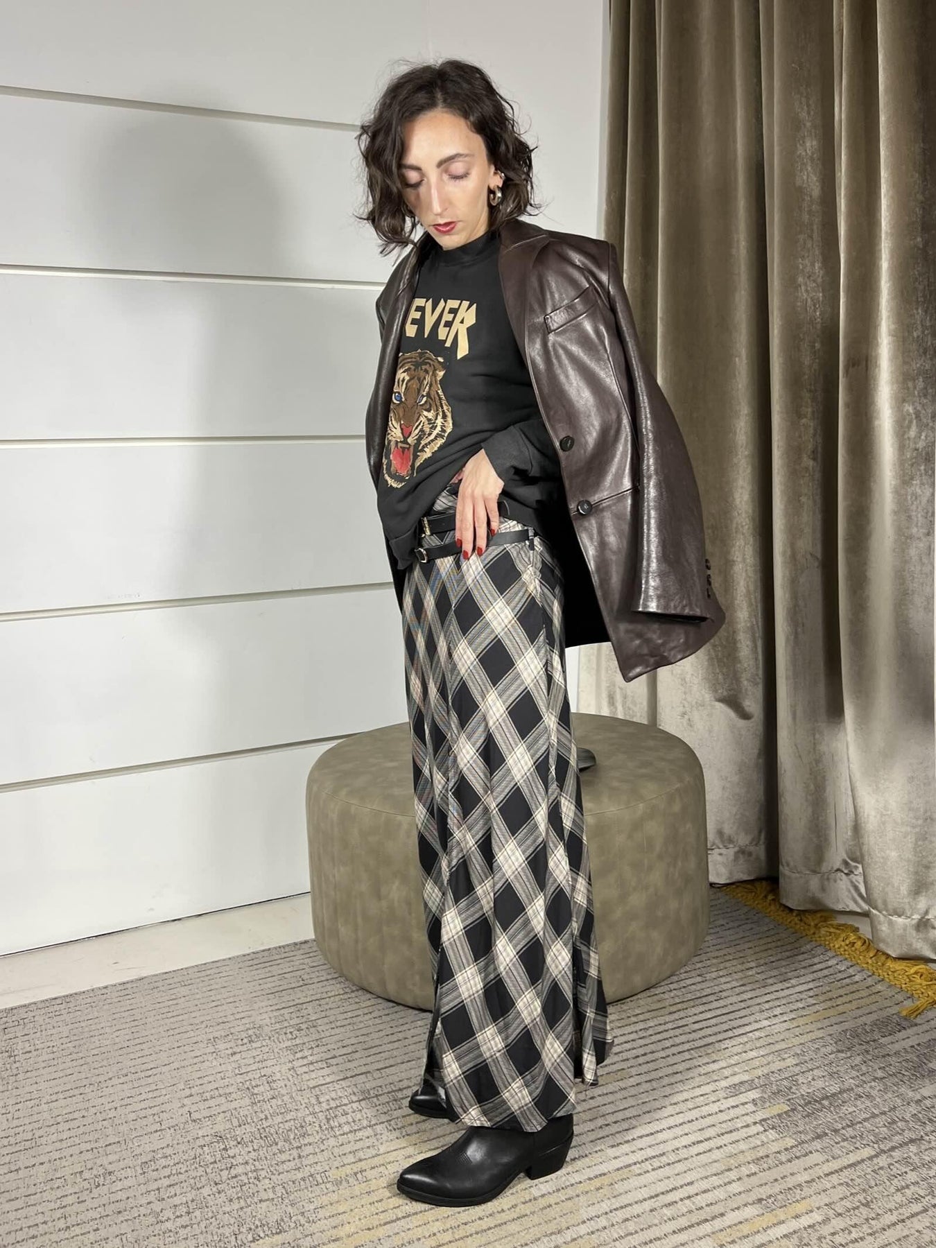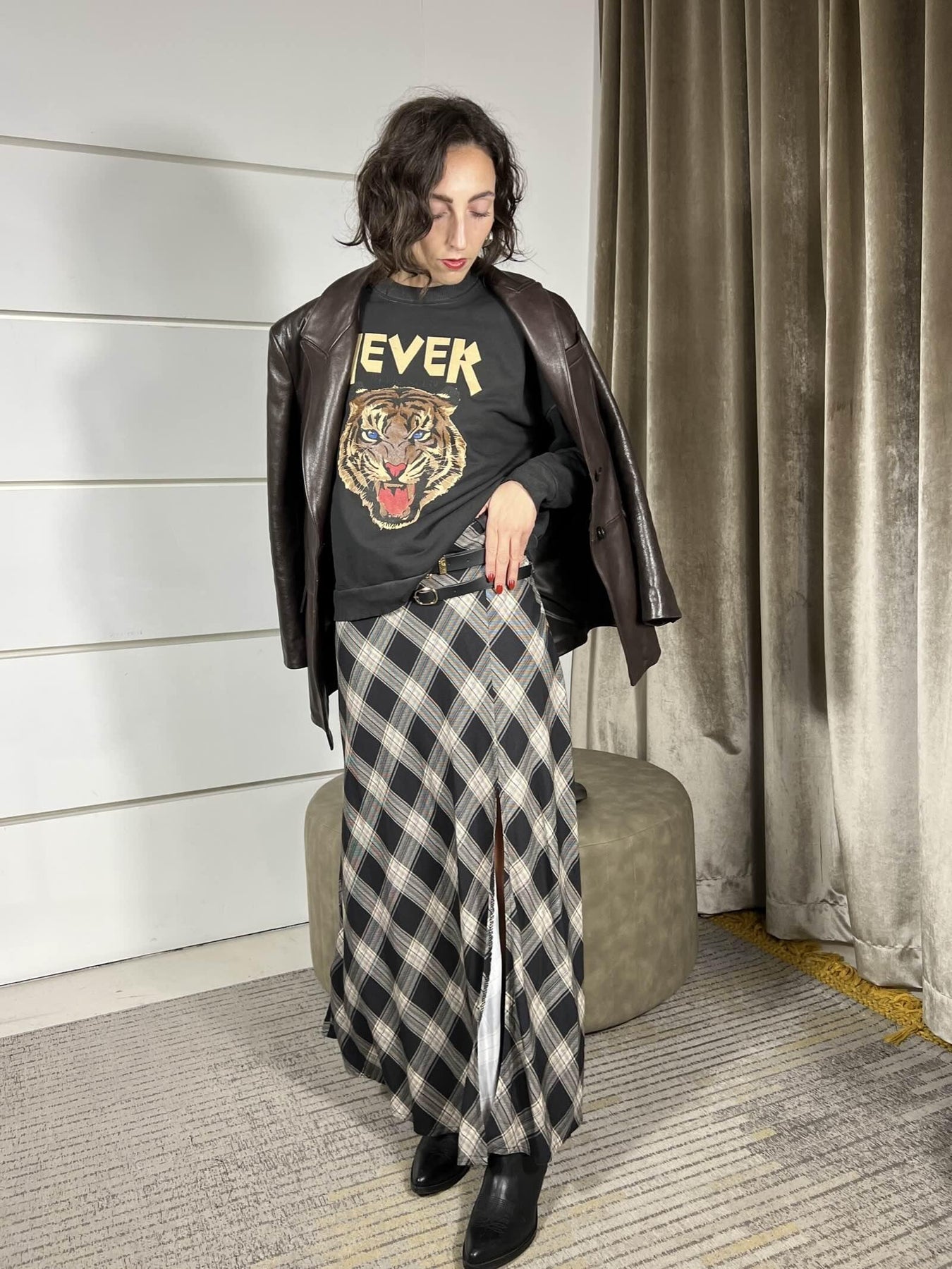 Gonna HaveOne a quadri grigiacon spacco e doppia cinta. la modella indossa la s ed è alta 172cm. Composizione 100%vi