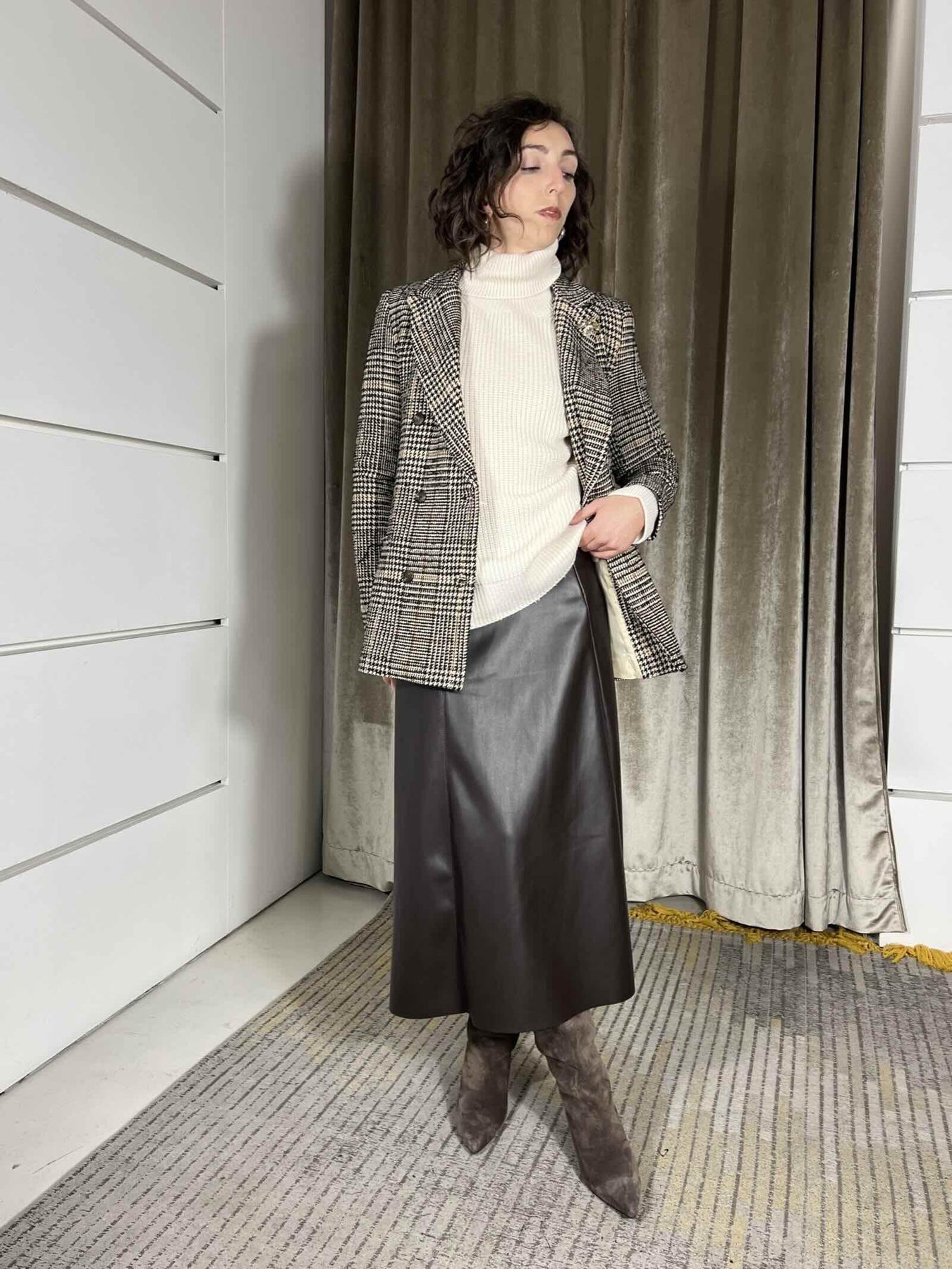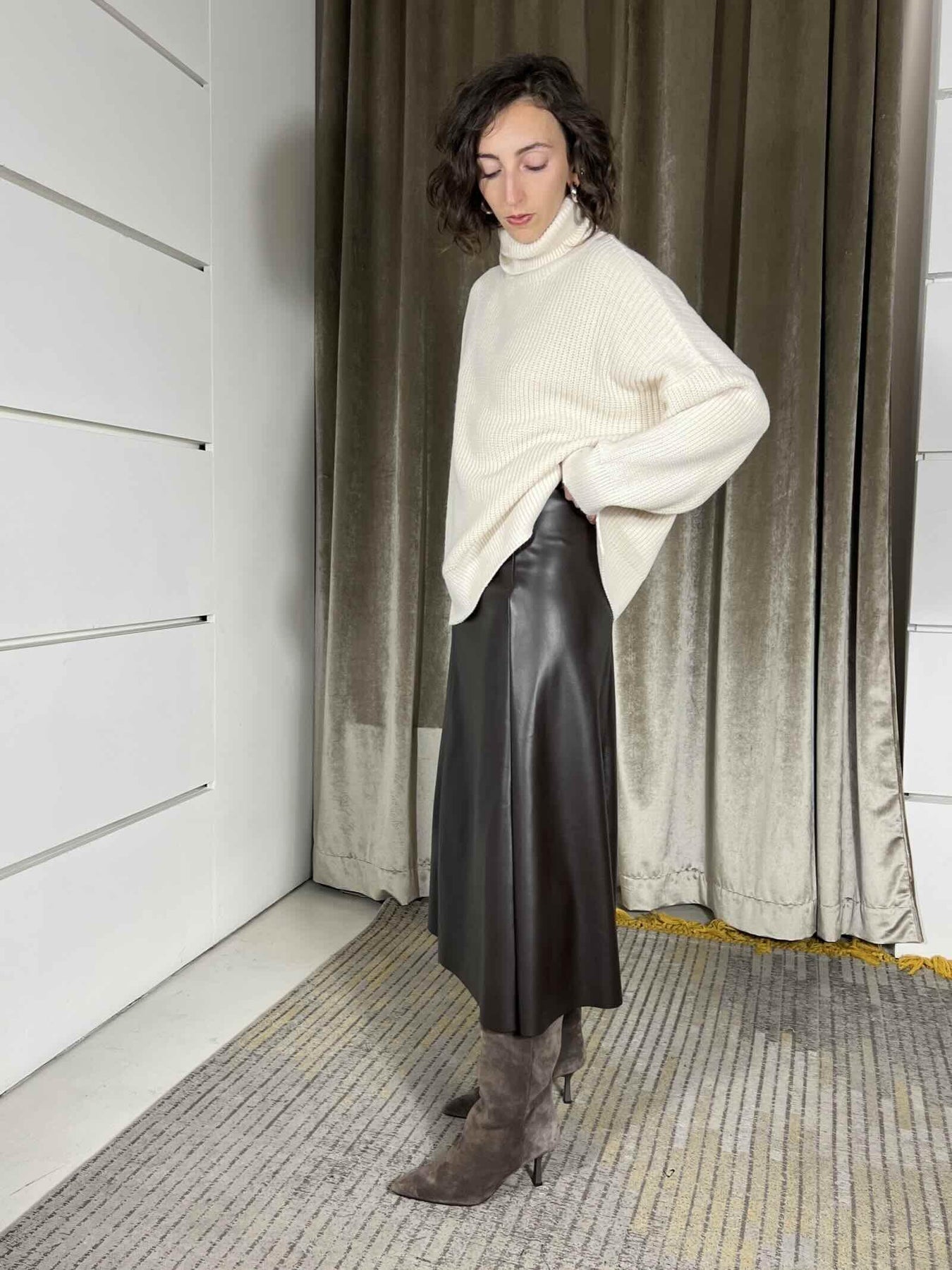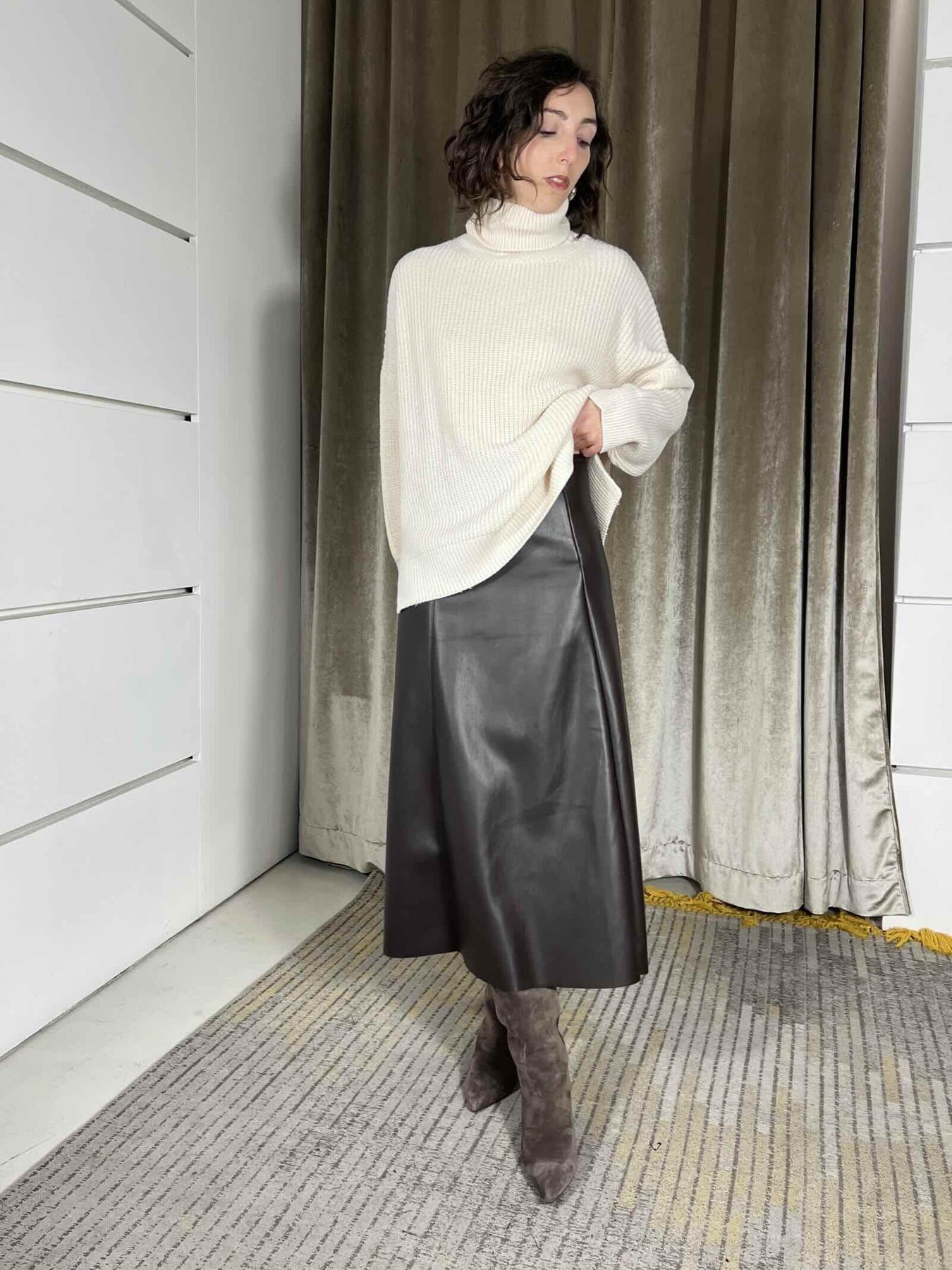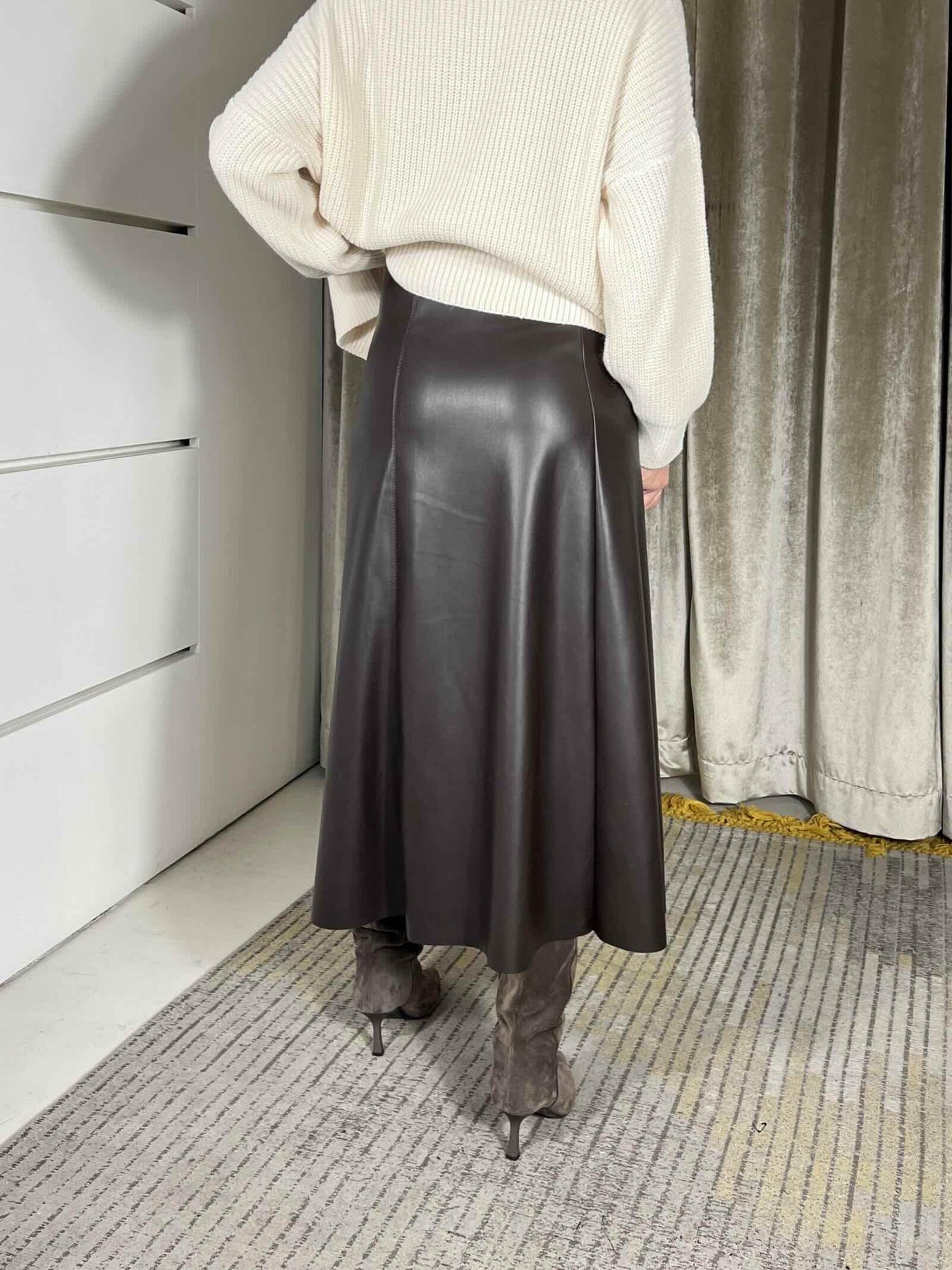 gonna Tensione In caffe in ecopelle svasata m.pl, la modella indossa la s ed è alta 172cm