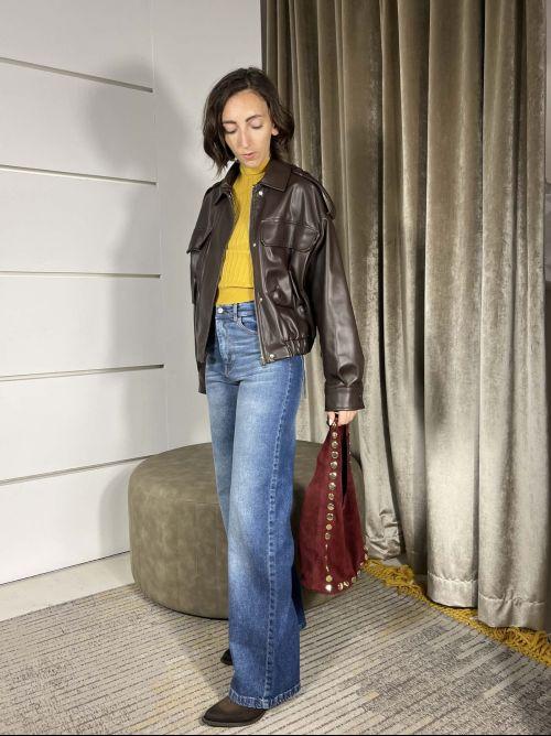Jeans HaveOne modello London , vita media alta, gamba dritta. denim medio. La modella indossa la s ed è alta 172cm. Composizione 100%co