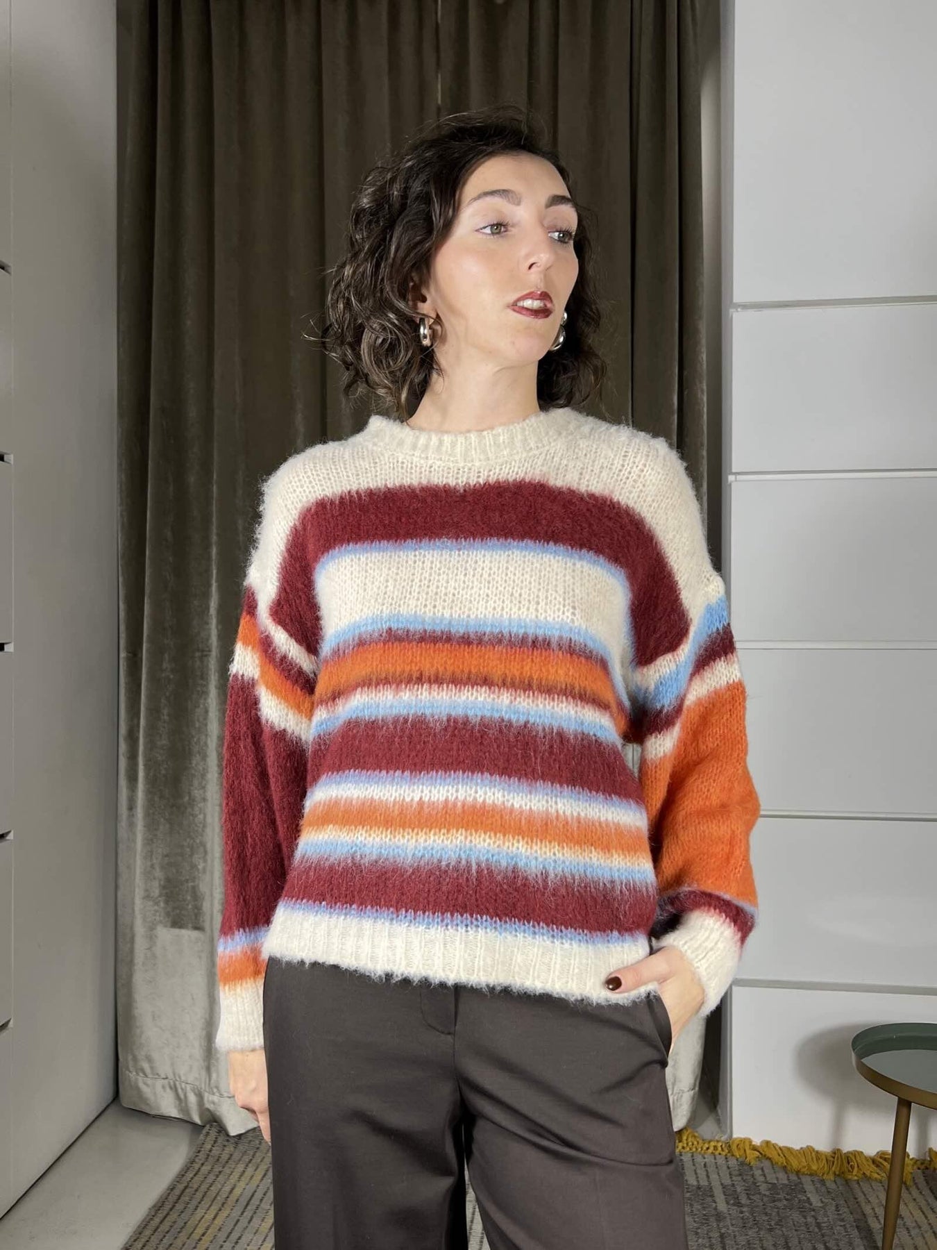 maglione a righe in misto lana MFP-P277BEIGE/SUGO/BORDEAUX/MELONE HAVE ONE
