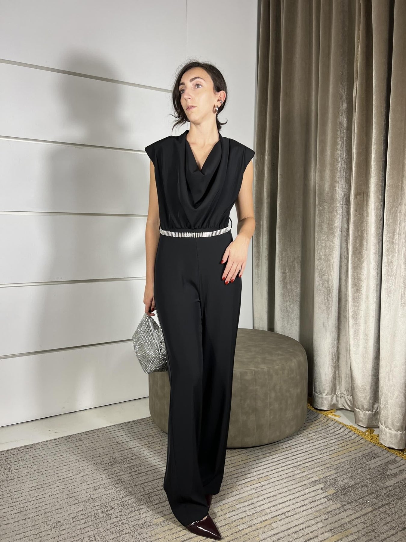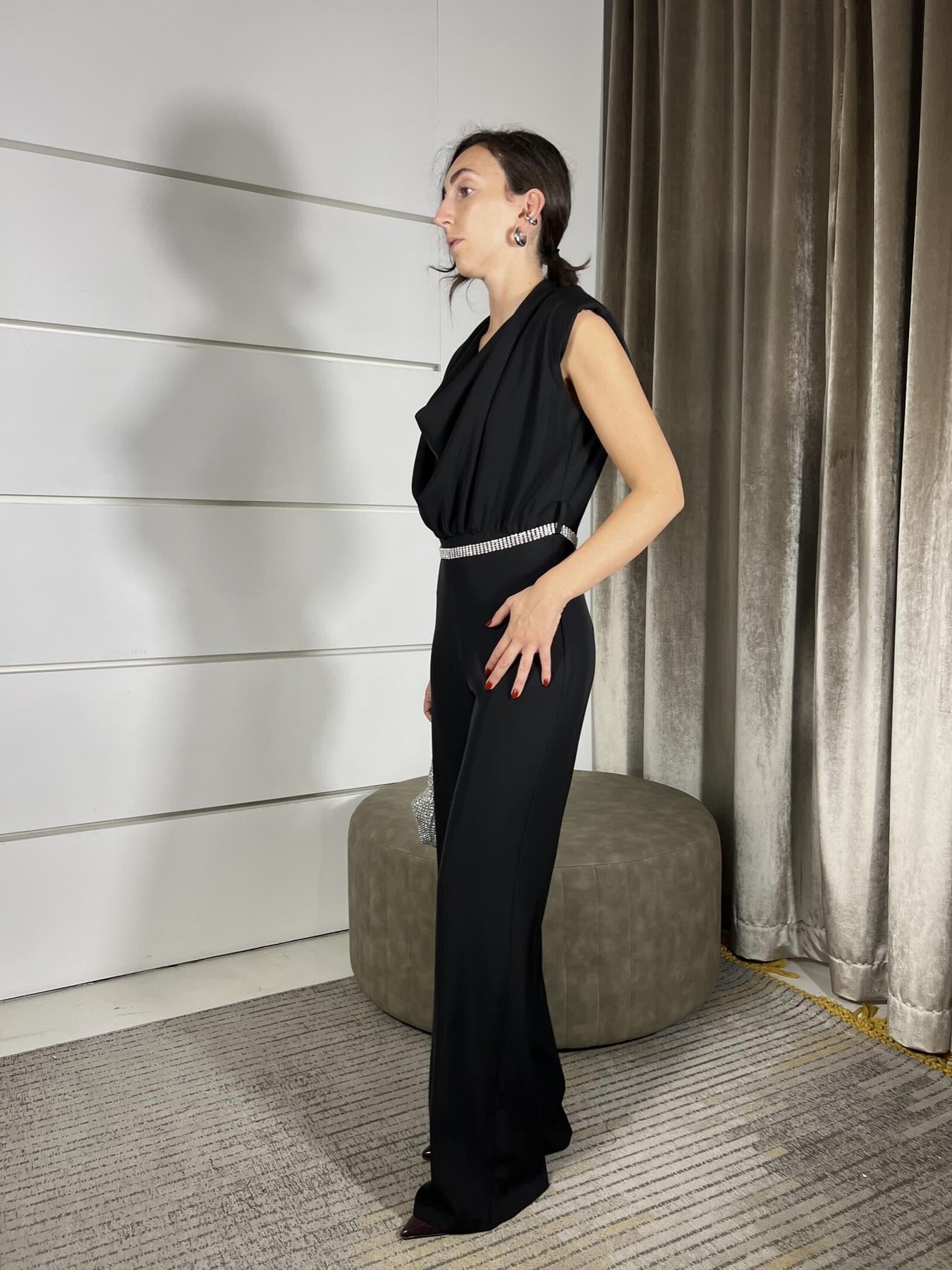 tuta HaveOne nera scollo a gronda .La modella indossa la s ed è alta 172cm. Composizione 100%pl