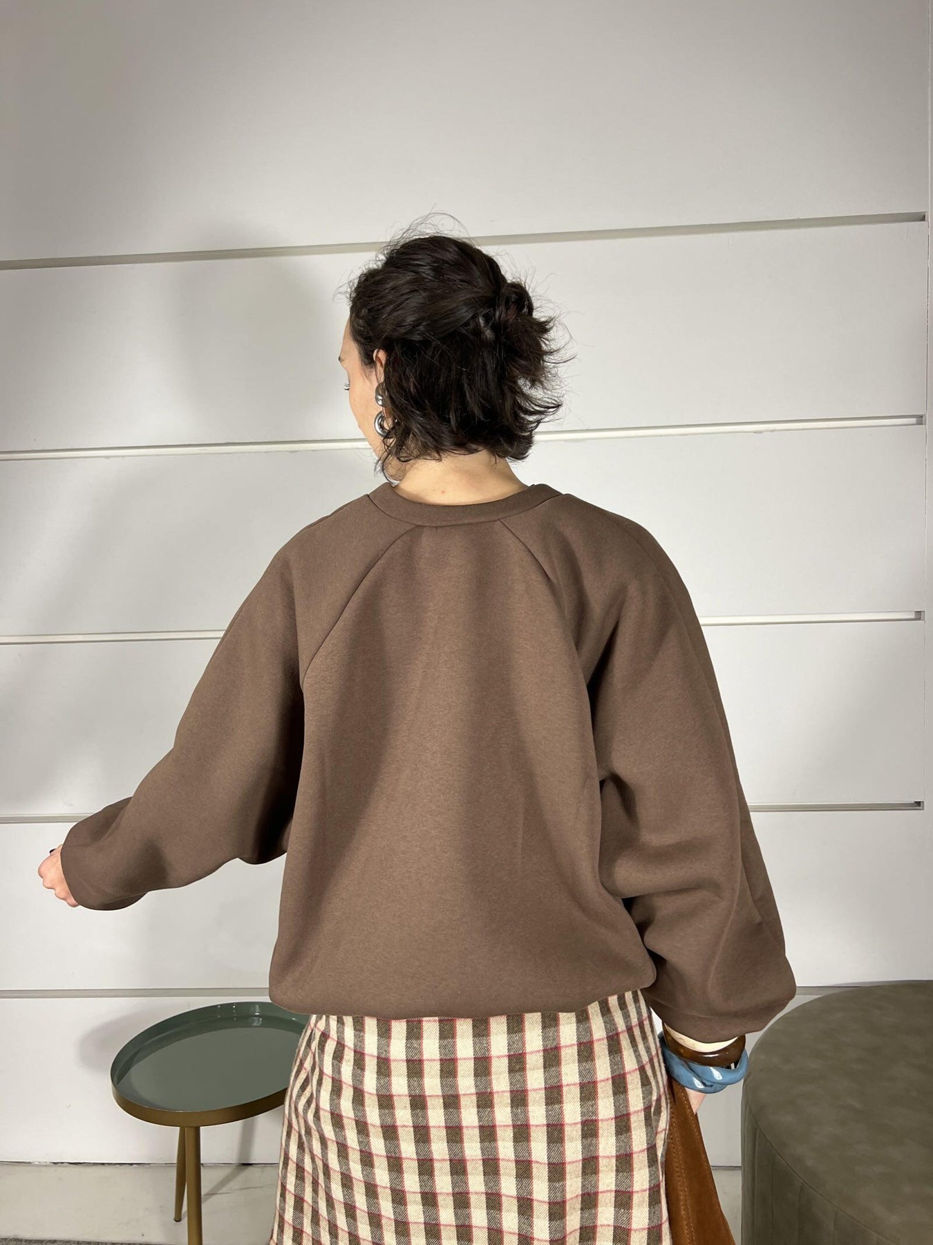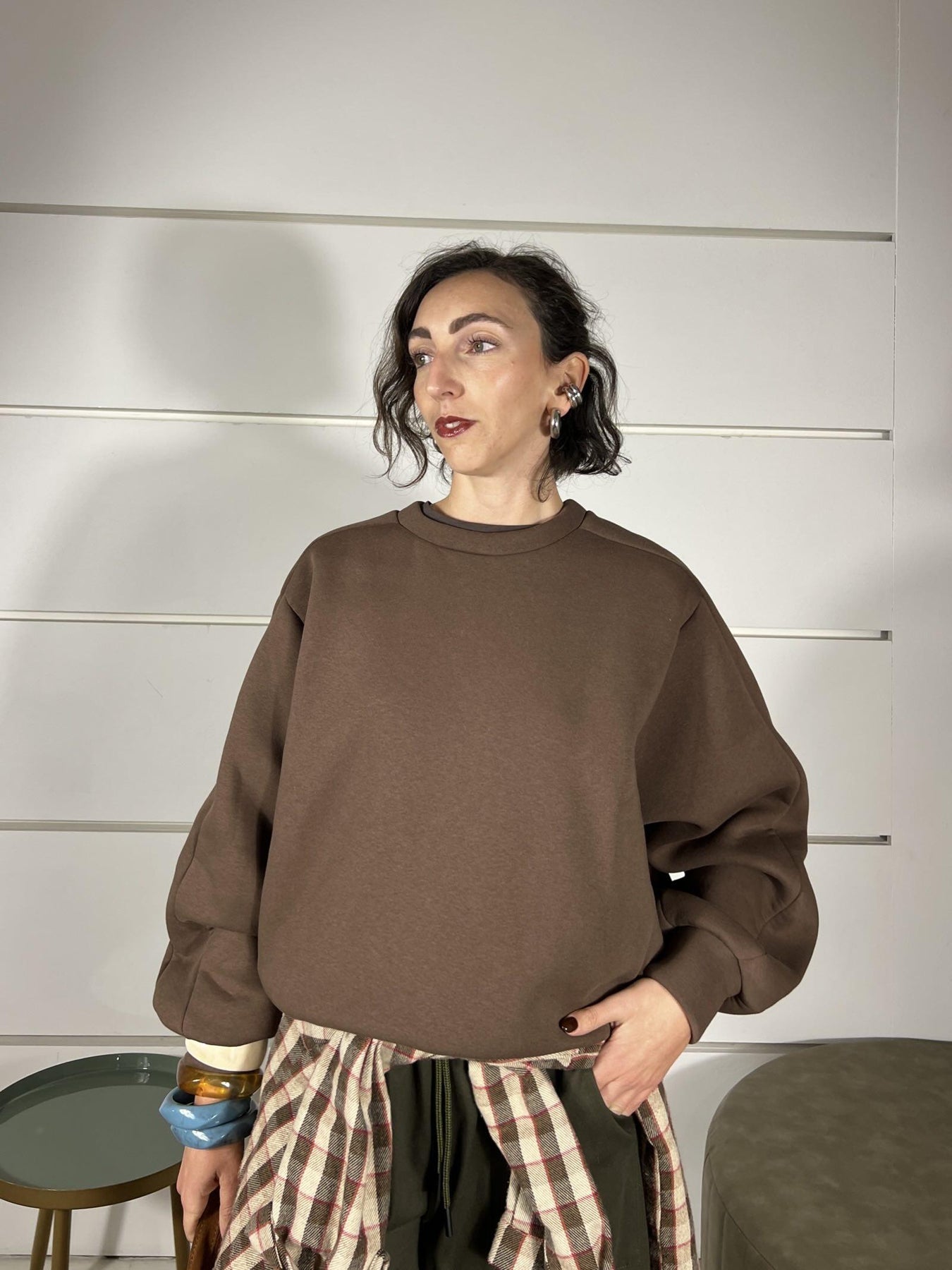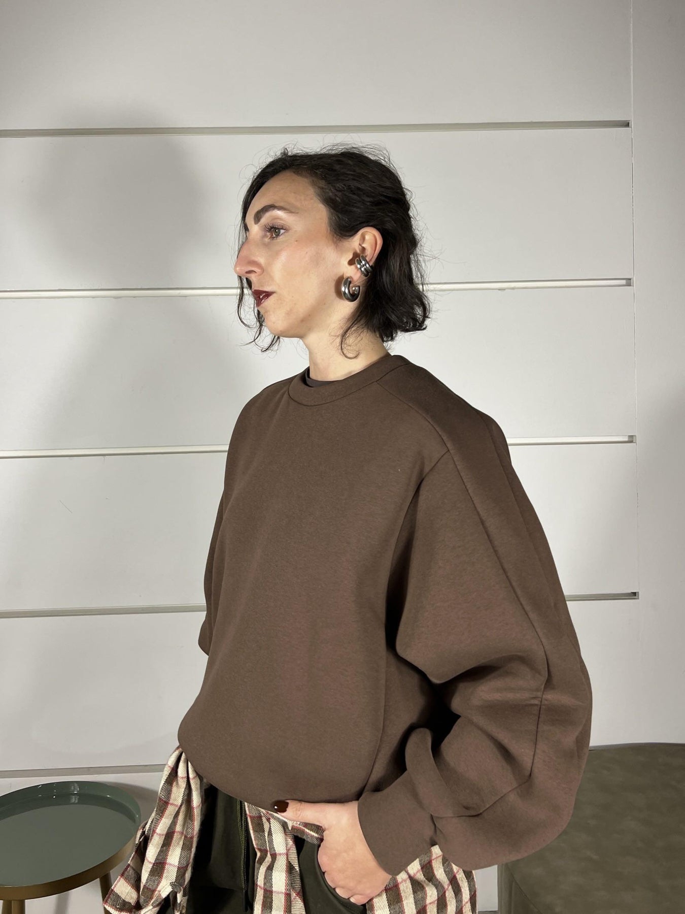 Felpa Have One over felpata con polsini. La modella è alta 172 cm e veste da una 38 a una 44. Composizione: 55%co 45%pl.
