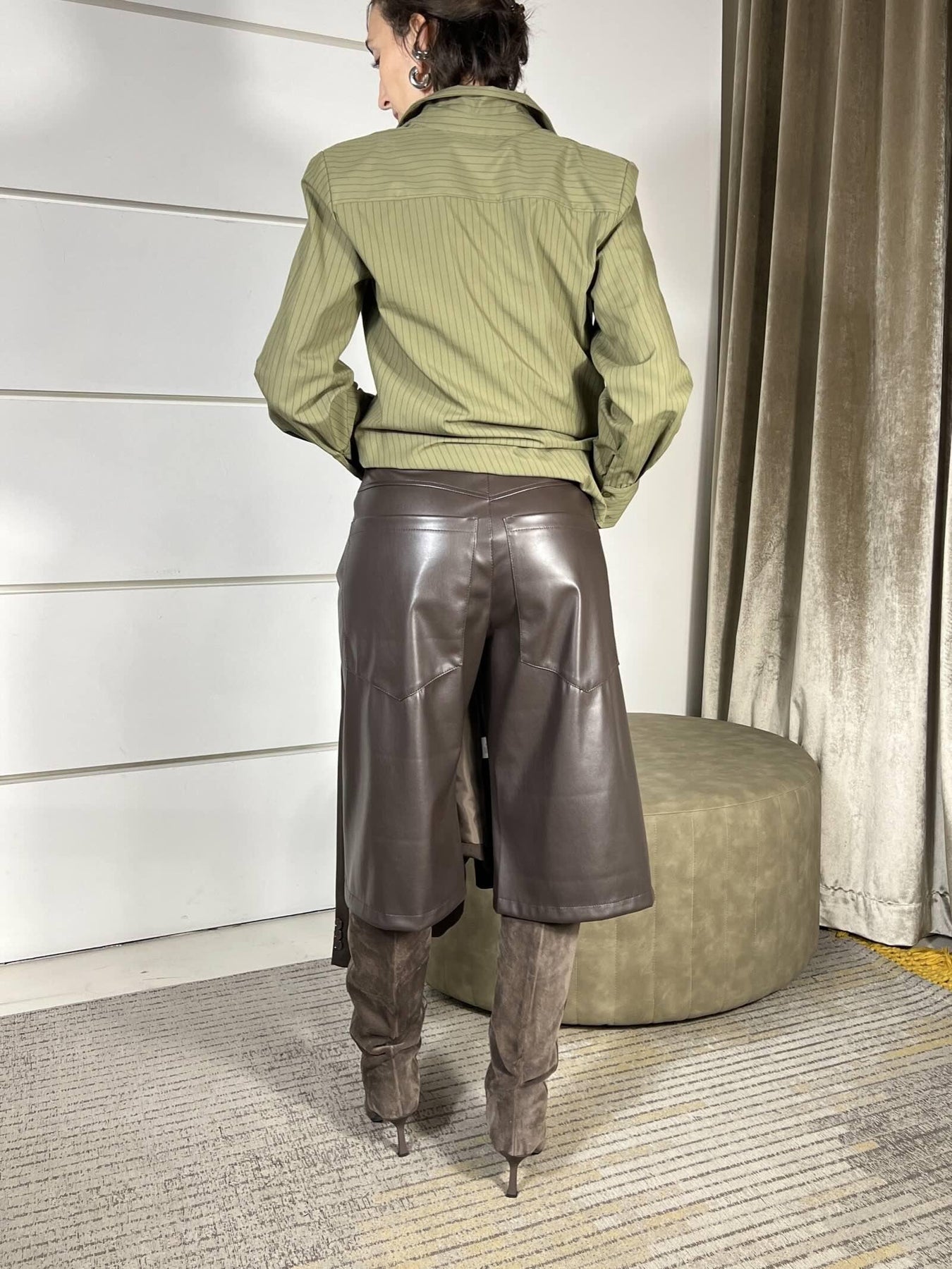 Bermuda Tensione In moro in ecopelle, veste abbondante la modella è una 40 e indossa la xs
