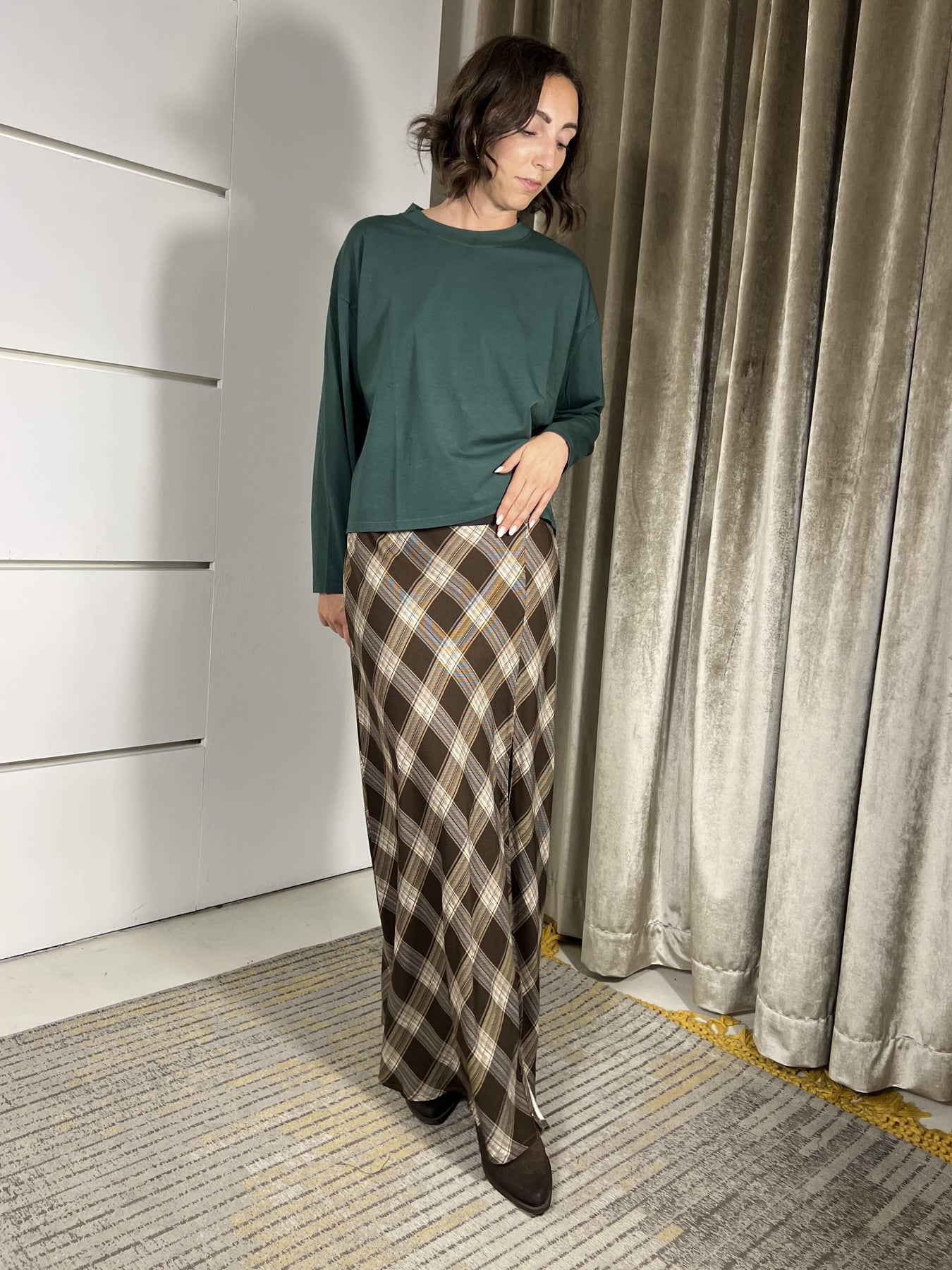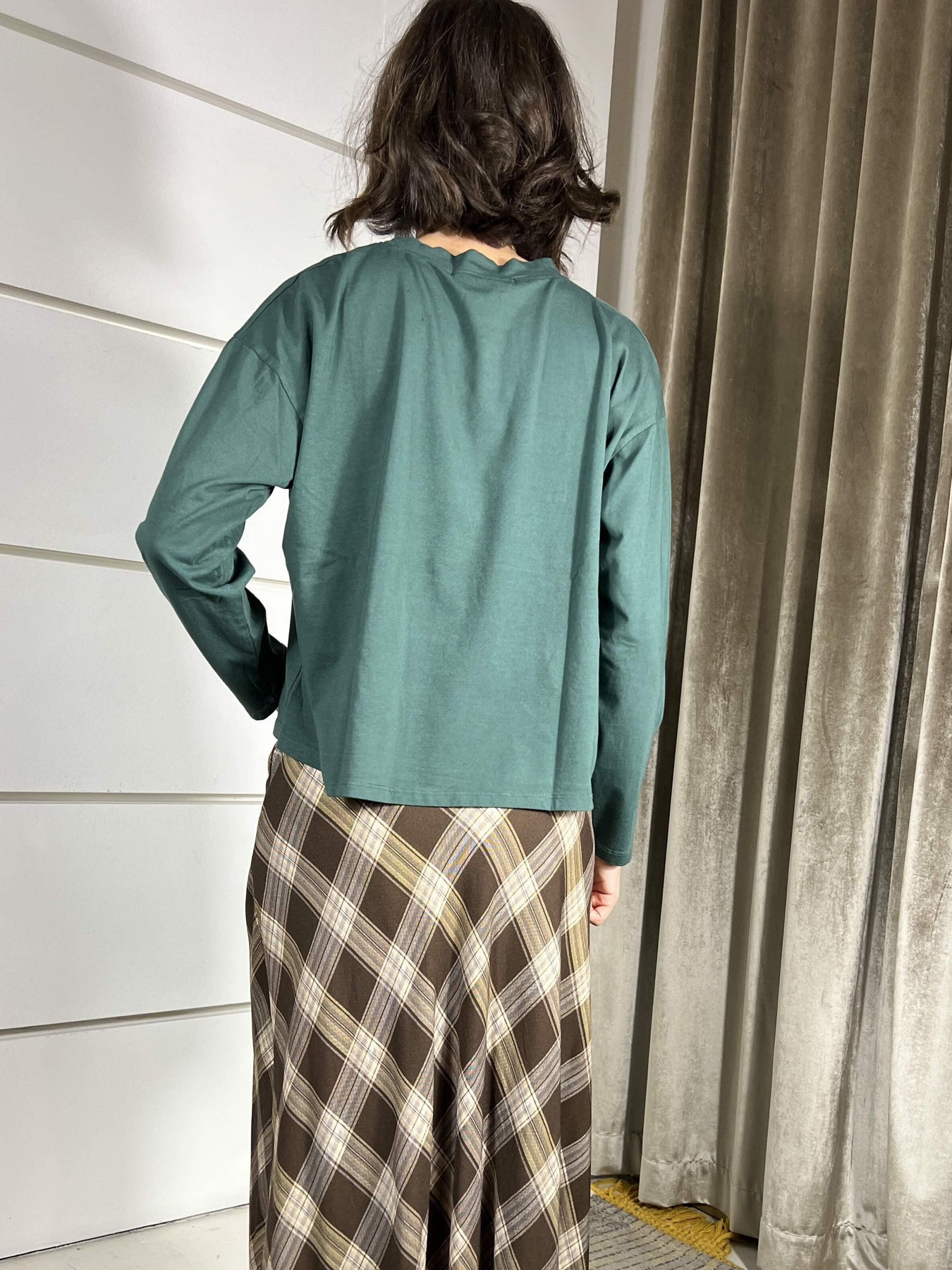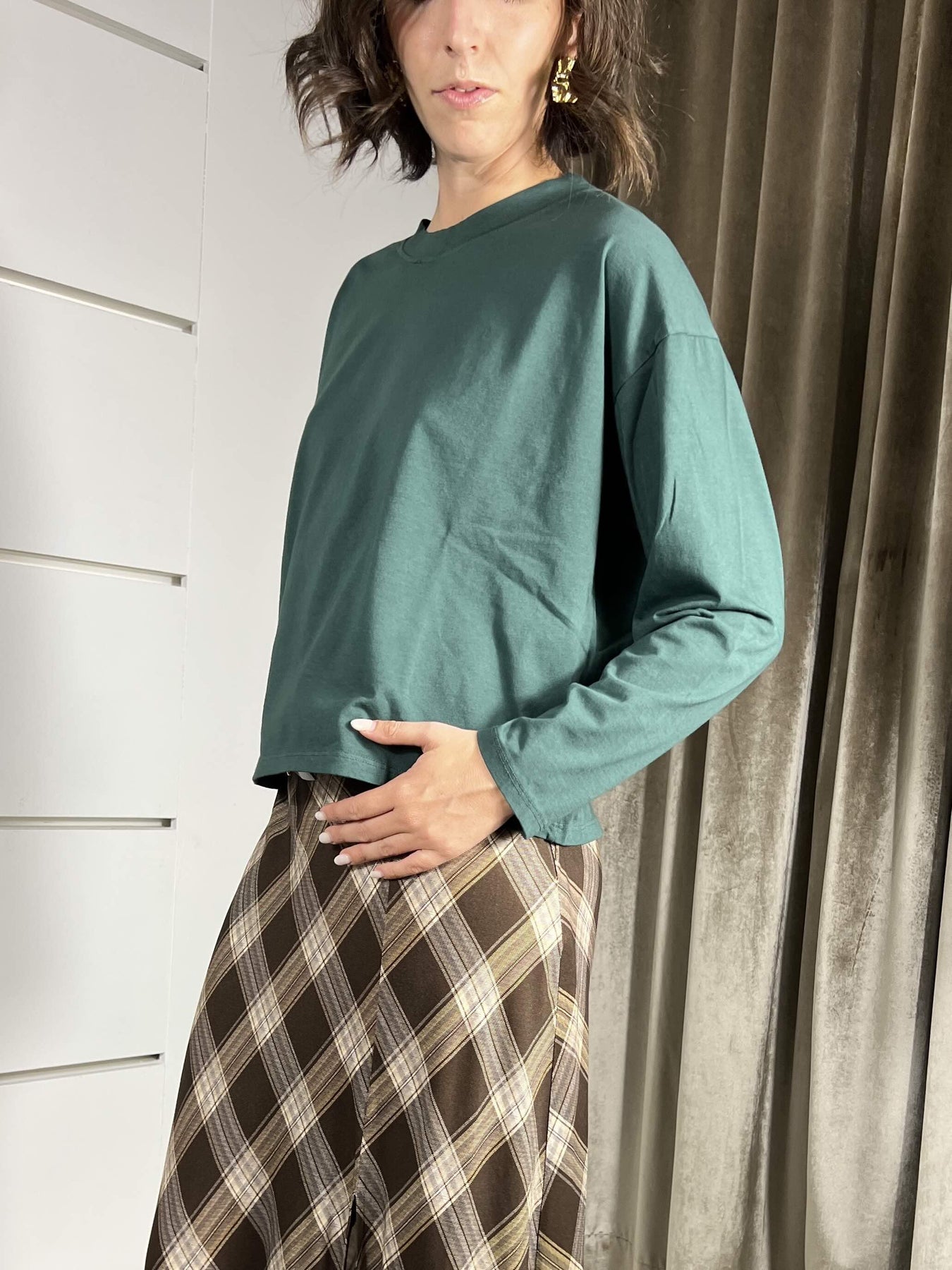 T-shirt HaveOne verde bottiglia maglia manica lunga, a scatola, in cotone, girocollo. Composizione 95%co 5%ea