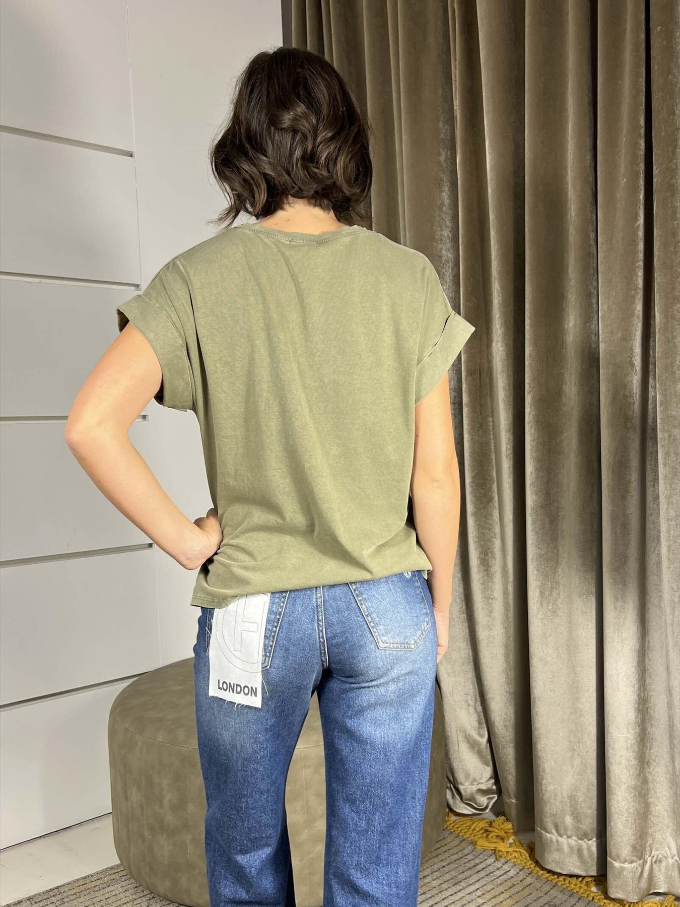 T-SHIRT VERDE MILITARE CON STAMPA FICHI