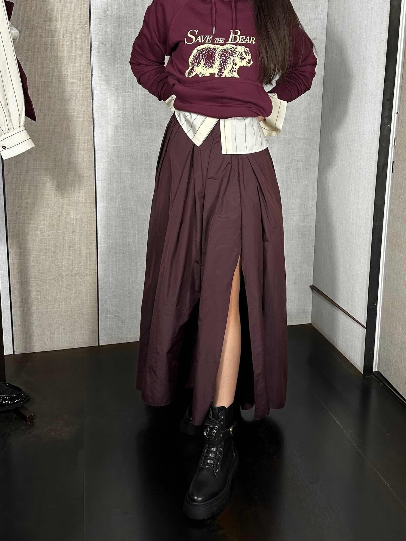 gonna lunga svasata bordeaux in taffetà