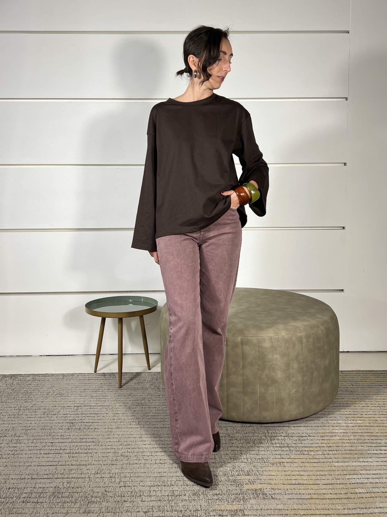 t-shirt girocollo con manica lunga ampia moro UF0169MORO VICOLO