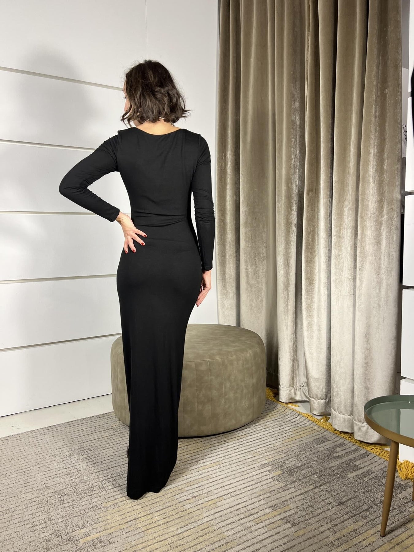 ABITO LUNGO NERO CON SCOLLO QUADRATO E COPPE