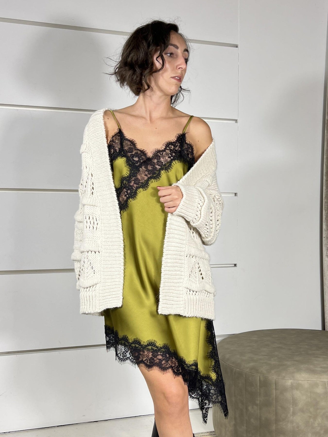 abito olio con fondo asimmetrico in pizzo nero TF1195OLIO VICOLO