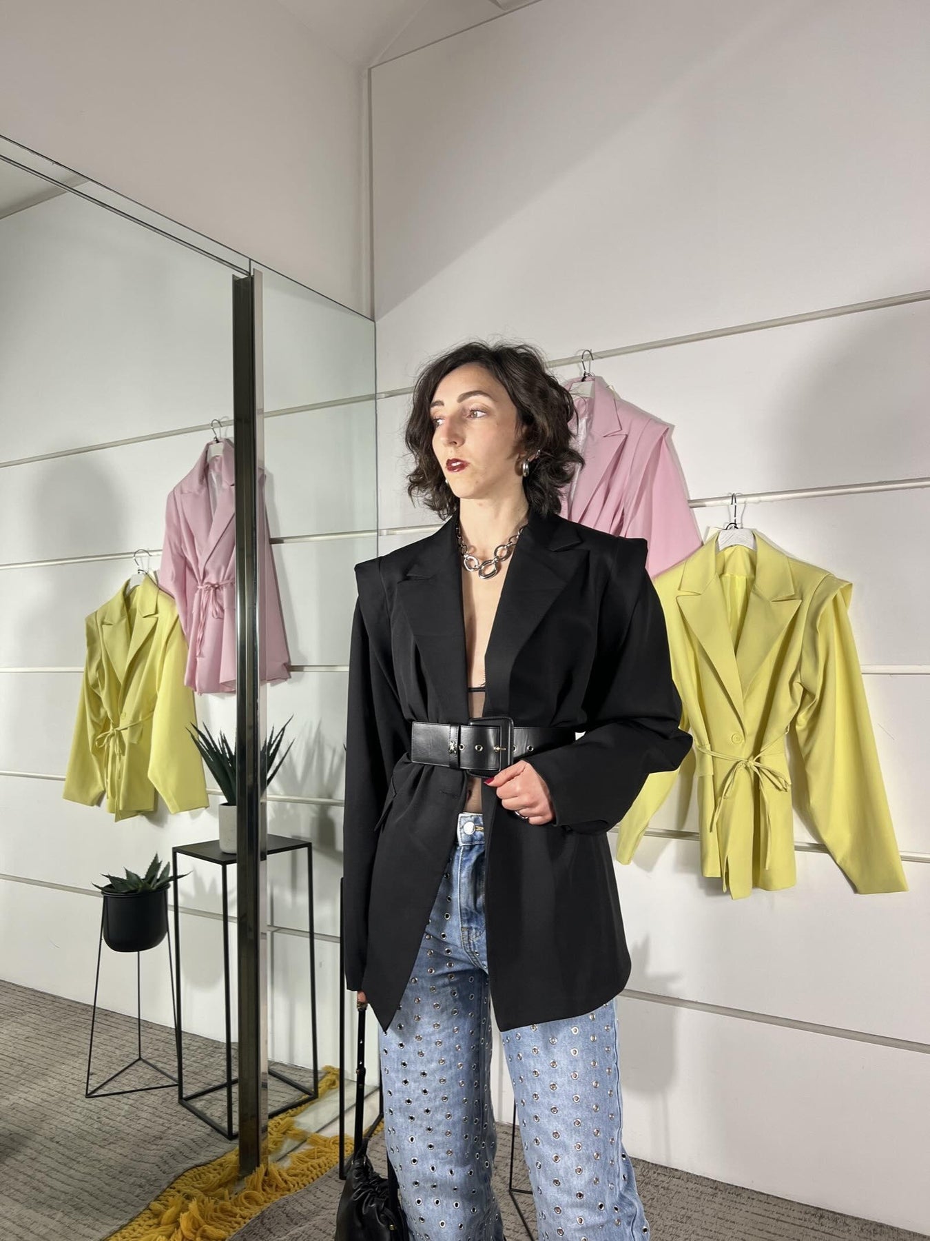 giacca viscosa ,spalla scesa con aletta e manica ampia,cintura a filo punto vita.95% poliestere 5% elastane. 26MP25076NERO FEMME SELECTION