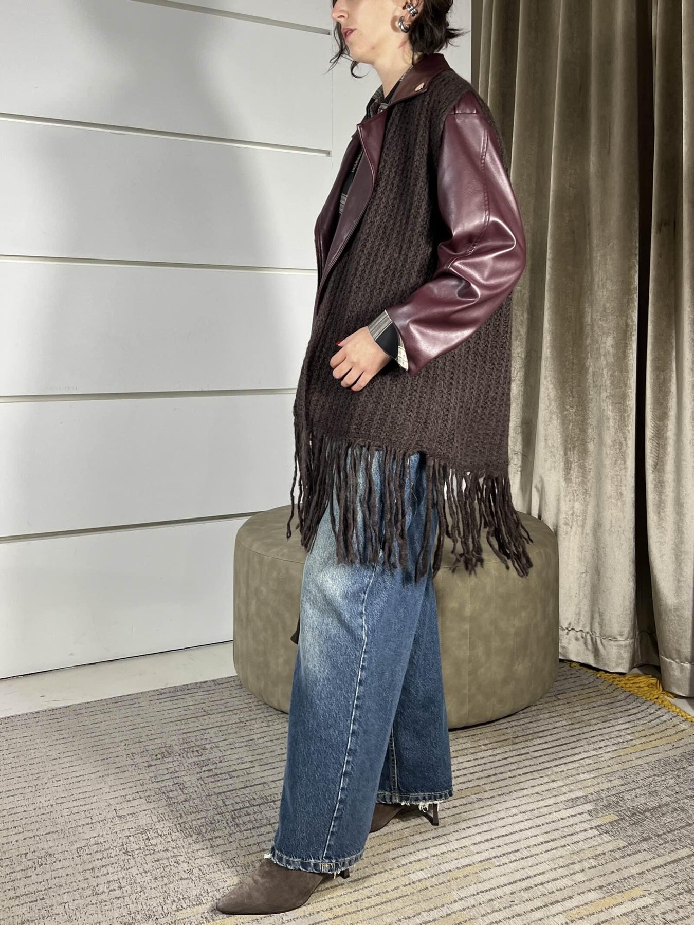 gilet lungo moro  in misto lana con frange F01O0656MORO PHILIA LOFT