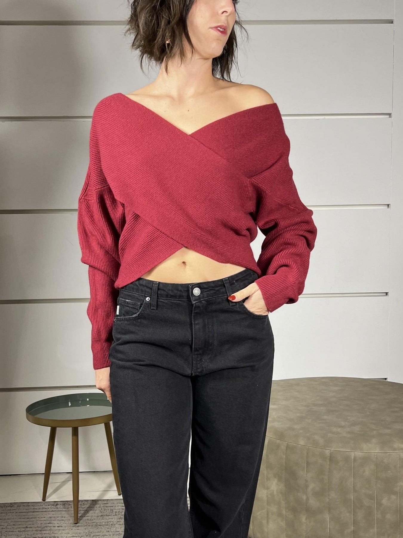 maglia a costine a incrocio manica lunga bordeaux 12011BORDEAUX SUSY MIX