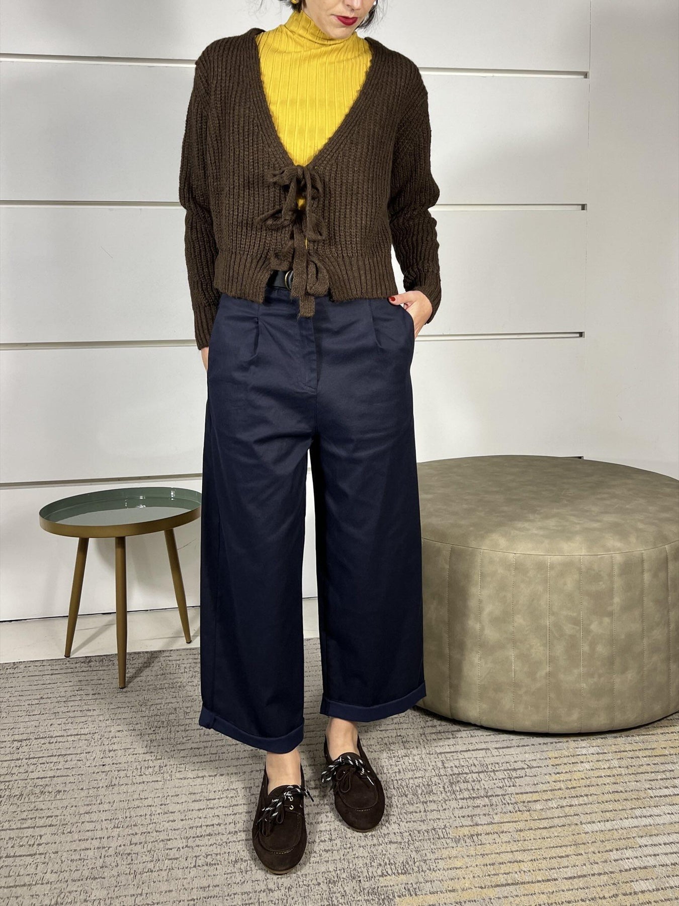 pantalone Susys Mix crop, la modella indossa la s ed è alta 172cm, composizione 4%ly 43%co 3%ea