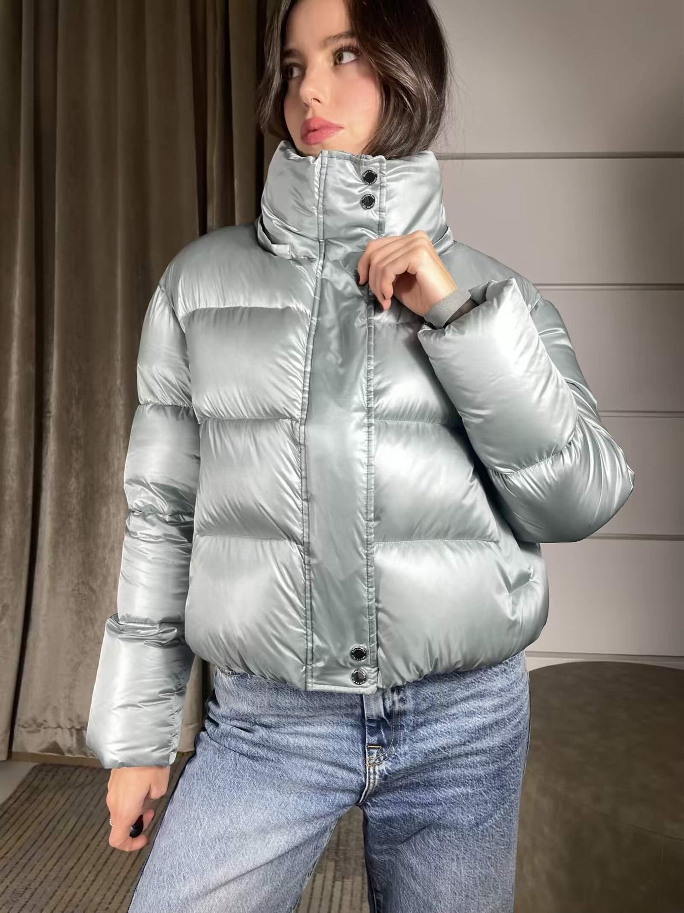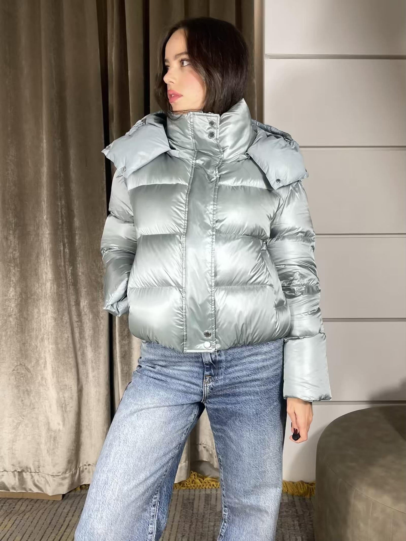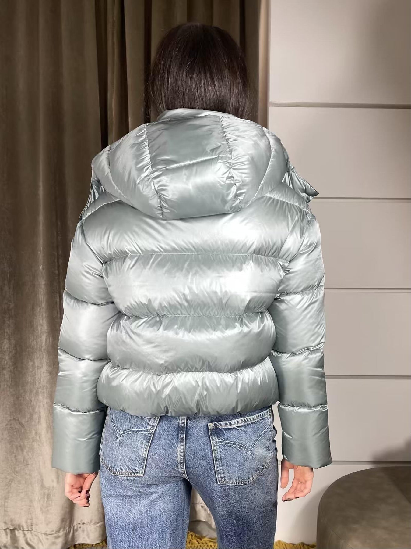 Piumino imbottito di Pinko, color verde chiaro, con cappuccio removibile, ultraleggero ma caldo. Chiusura con zip e bottoni automatici. Manica lunga. La modella indossa la tg. 40 ed è alta 1,72m. Composizione: Tessuto principale: 100% PoliammideImbottitura principale: 90% Piumino D'anatra, 10% Piuma D'anatra