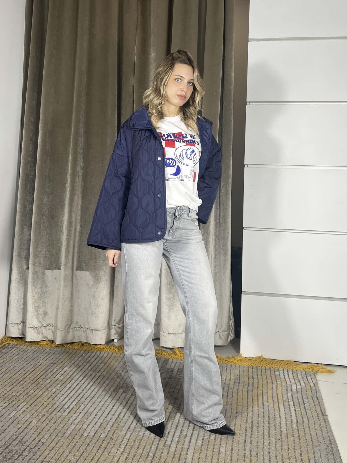 Trapuntino Vicolo blu con colletto a camicia, tasca a filo, over, coulisse nel retroLa modella 170 cm ed è una 40, indossa taglia S. Composizione 100%pl